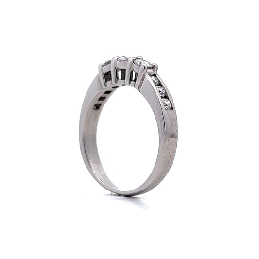 .09 Vintage 3 Stone Wedding Band in 14k White Gold