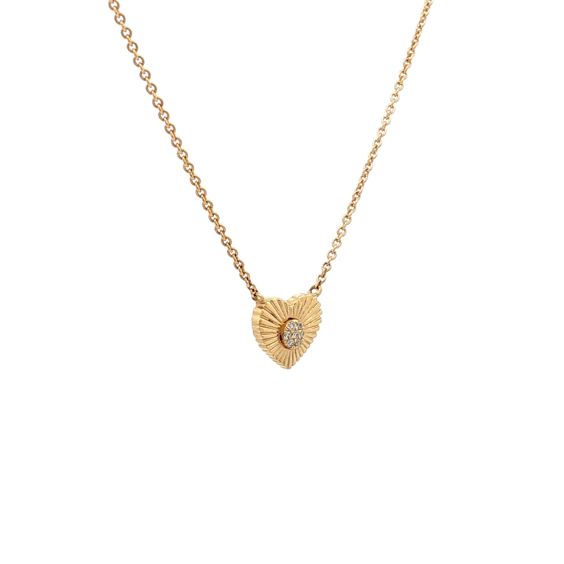 .02 Diamond Fluted Heart Pendant 18k Yellow Gold