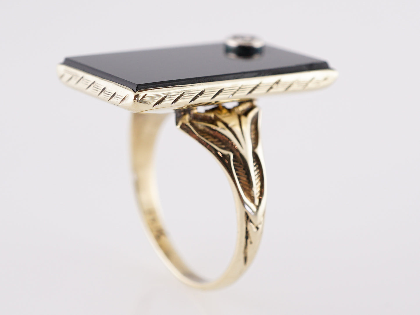 .03 Art Deco Onyx & Diamond Ring in 14k Yellow Gold