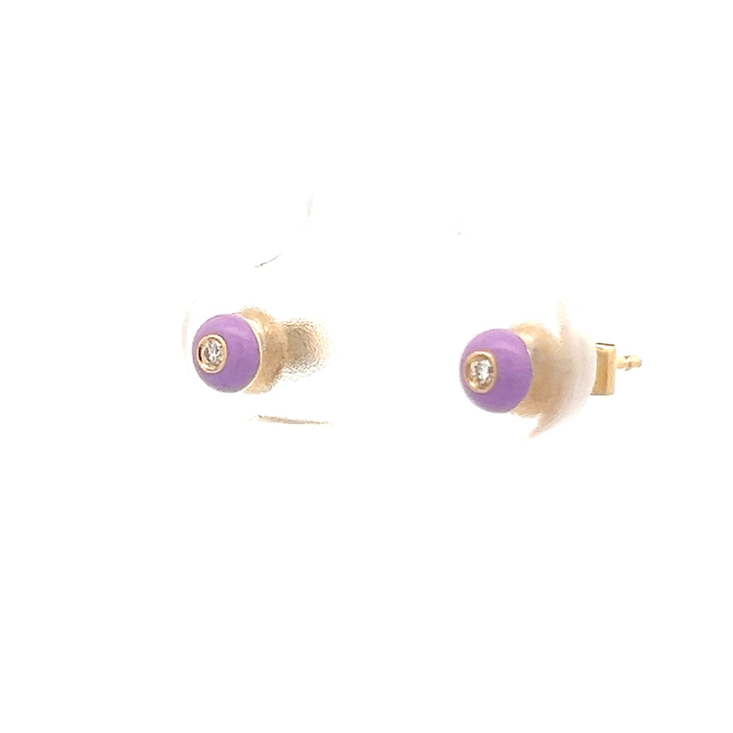 .03 Diamond & Pink Enamel Stud Earrings in 14k