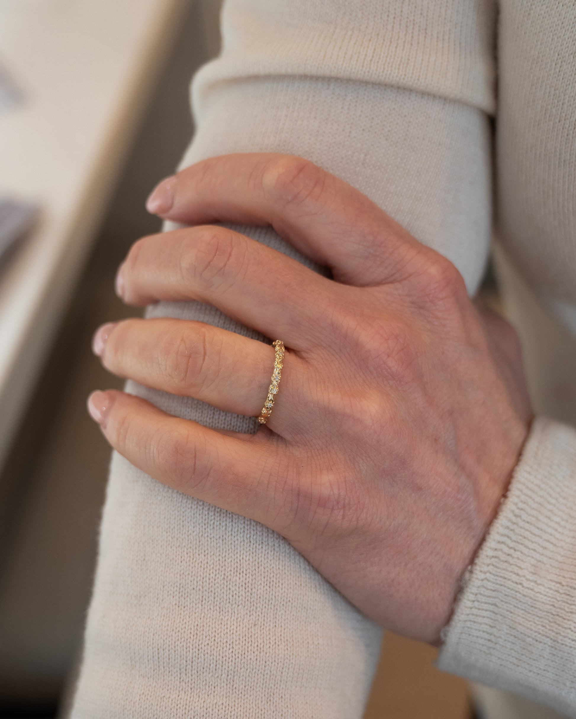 .04 Diamond Floral Wedding Band 14k Yellow Gold