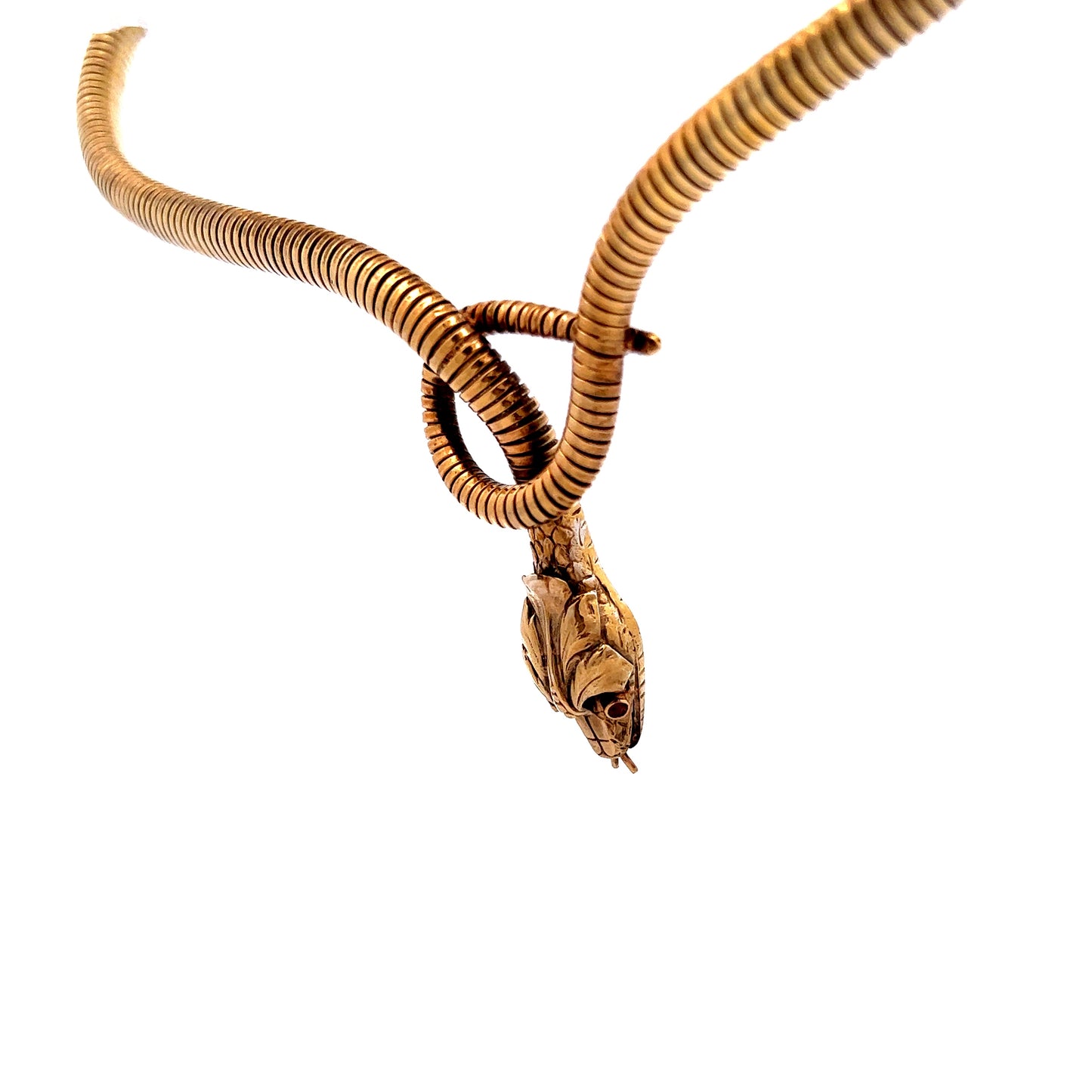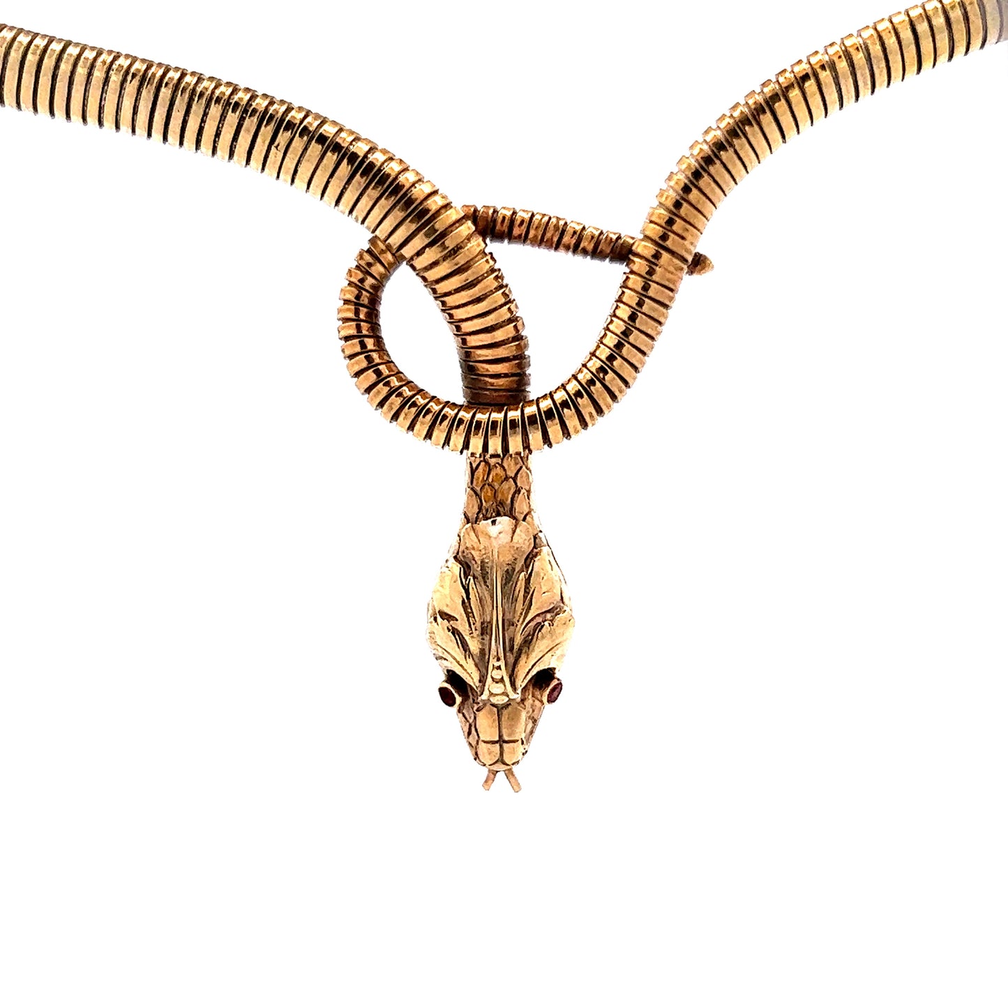 Vintage Victorian Ruby Snake Necklace in 9k Yellow Gold