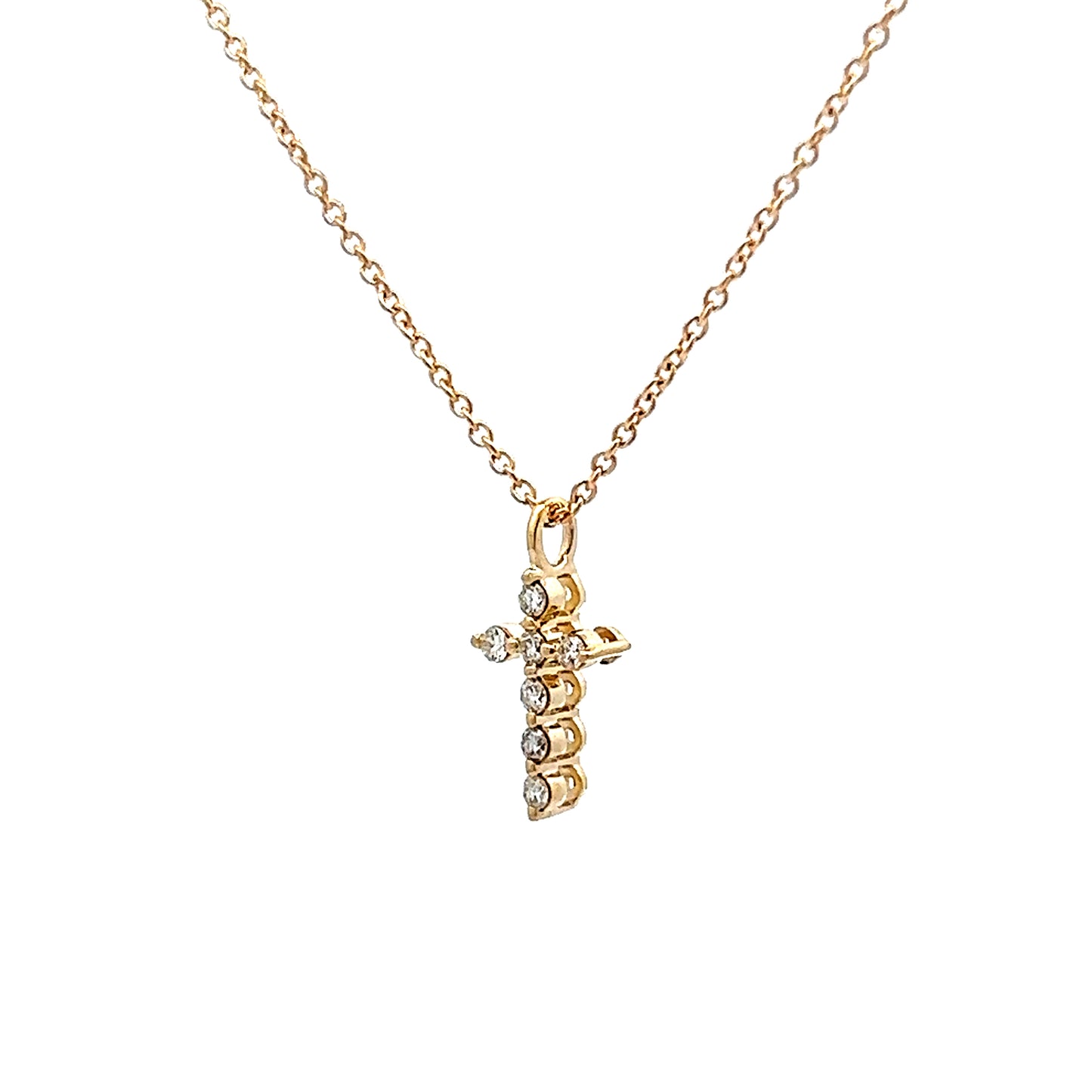 Small Diamond Cross Pendant Necklace in 14k Yellow Gold