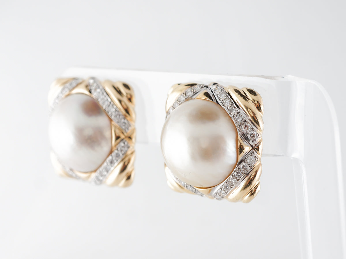 1.00 Carat Diamond & Pearl Earrings in Yellow Gold
