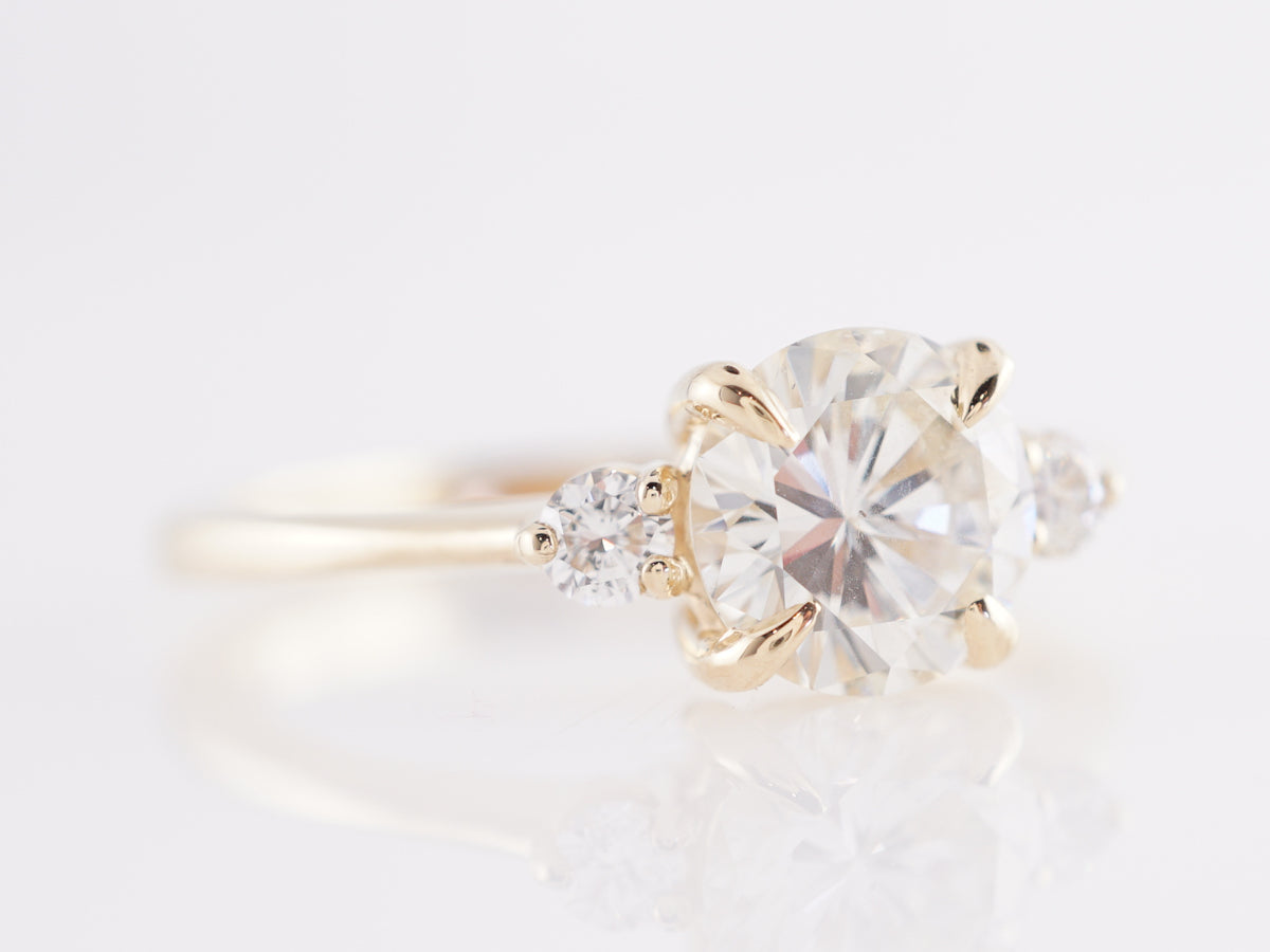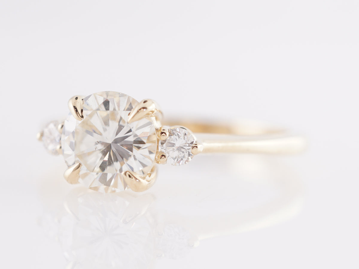 1.03 GIA Diamond Engagement Ring in 14k Yellow Gold. This wonderful modern engagement ring features a 1.03 carat GIA certified round brilliant cut diamond set in 14 karat yellow gold. The center stone is accented by round brilliant cut diamonds. This is a custom design we make in house that we like to call the Little Black Dress, because it looks great on everyone!