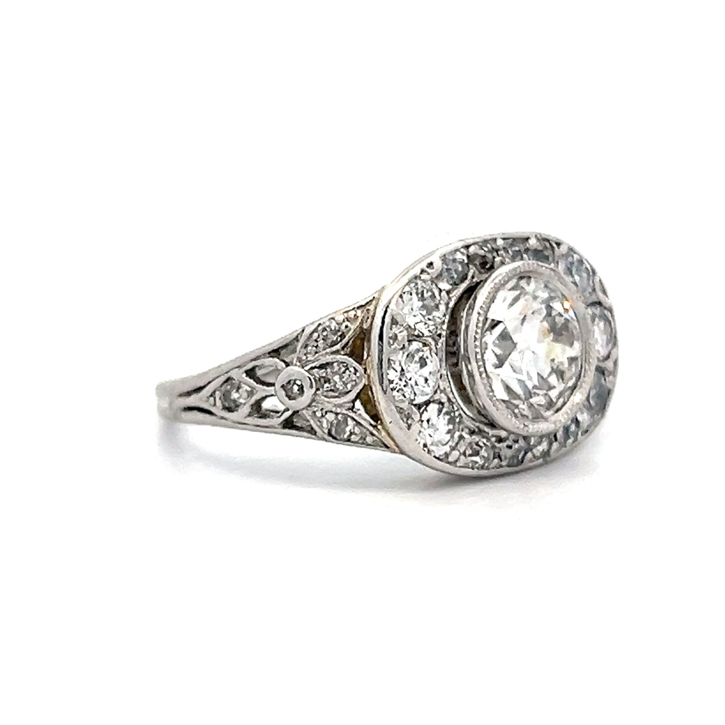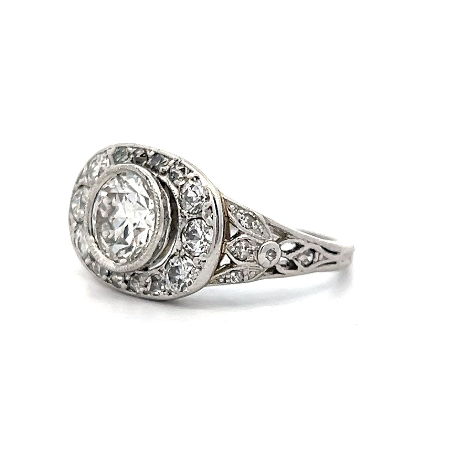 1.04 Art Deco Diamond Bezel Engagement Ring in Platinum