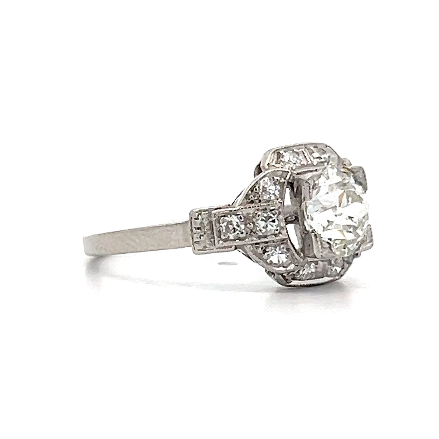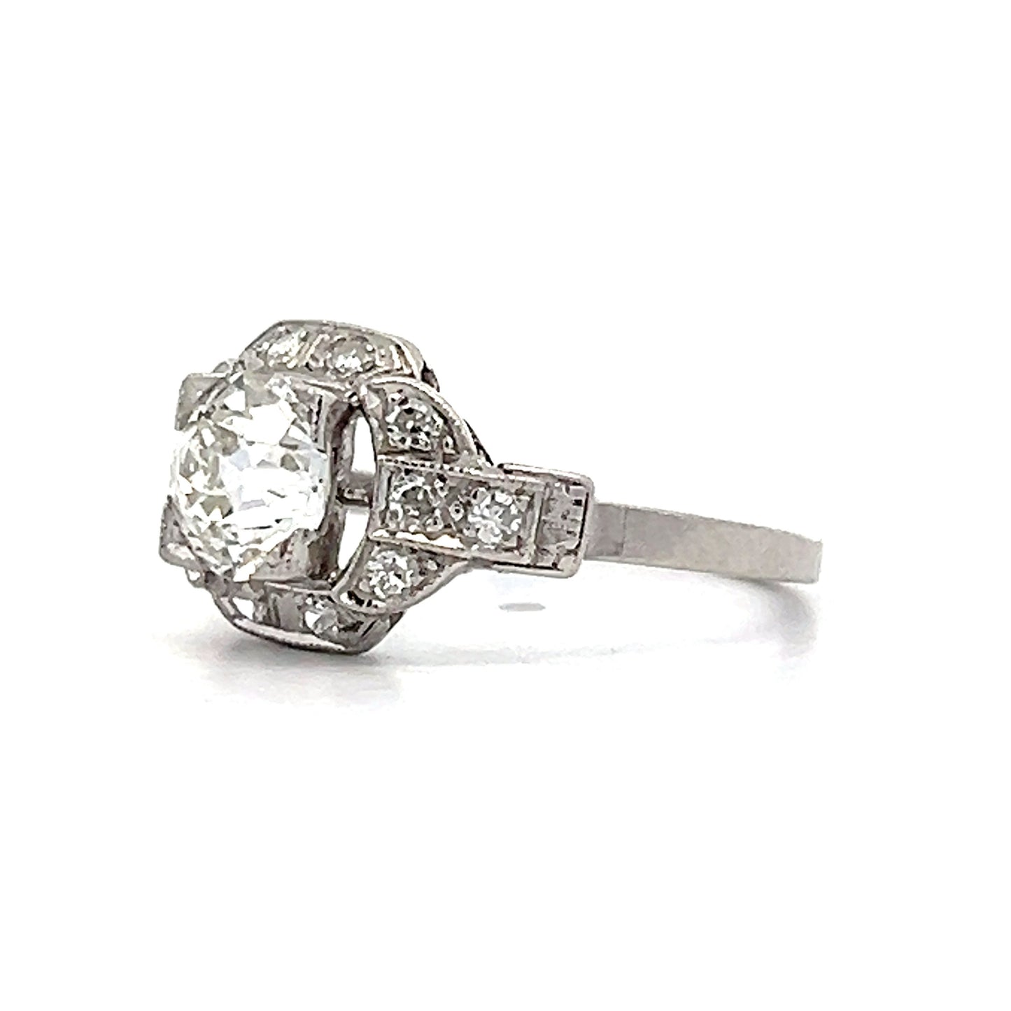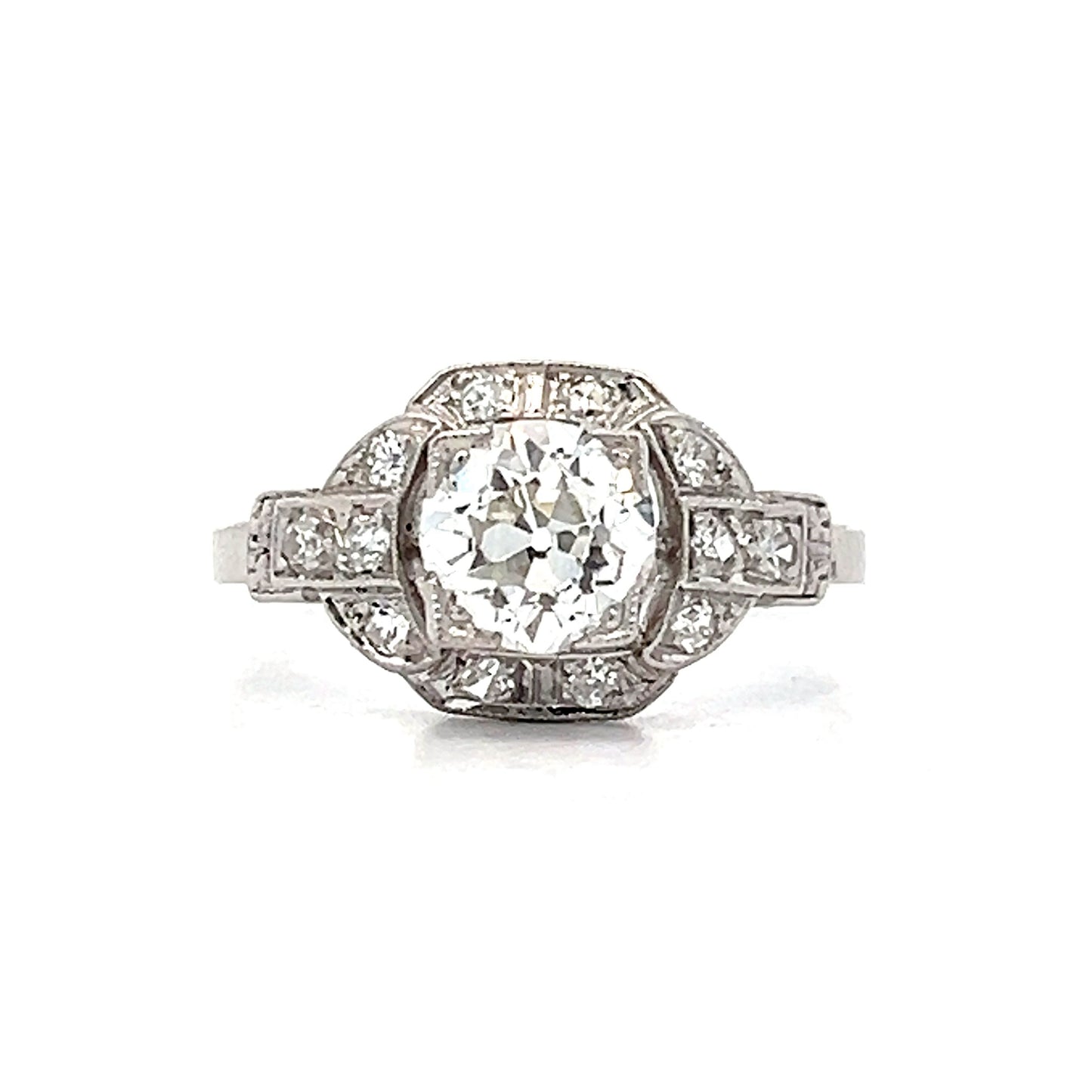1.04 Art Deco Diamond Halo Engagement Ring in Platinum