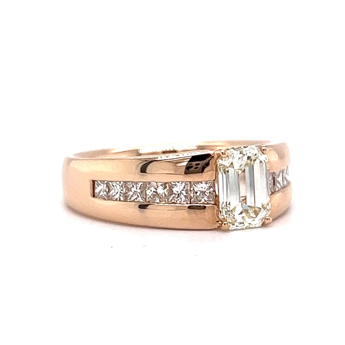 1.06 Emerald Cut Low Profile Diamond Engagement Ring in 18k Rose Gold