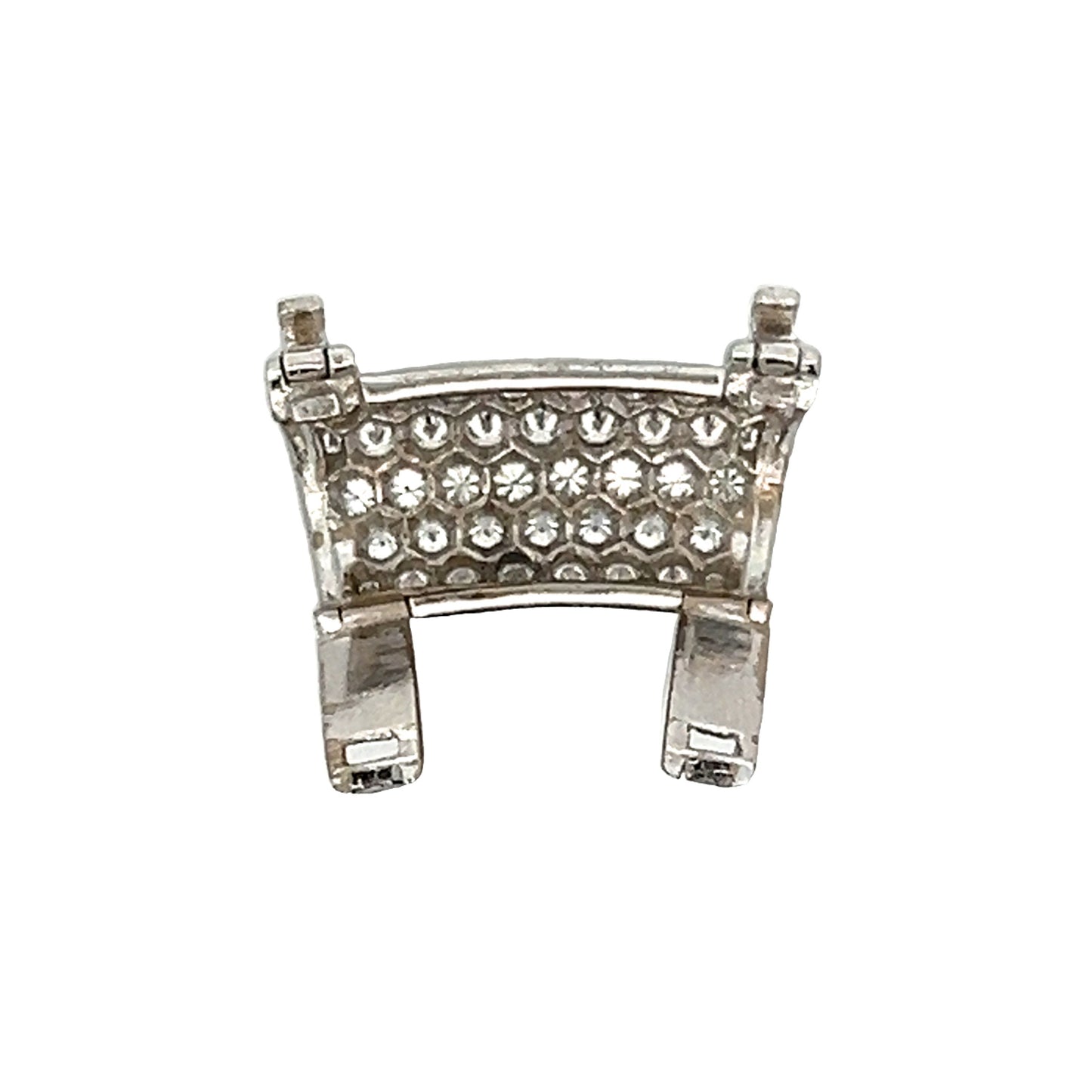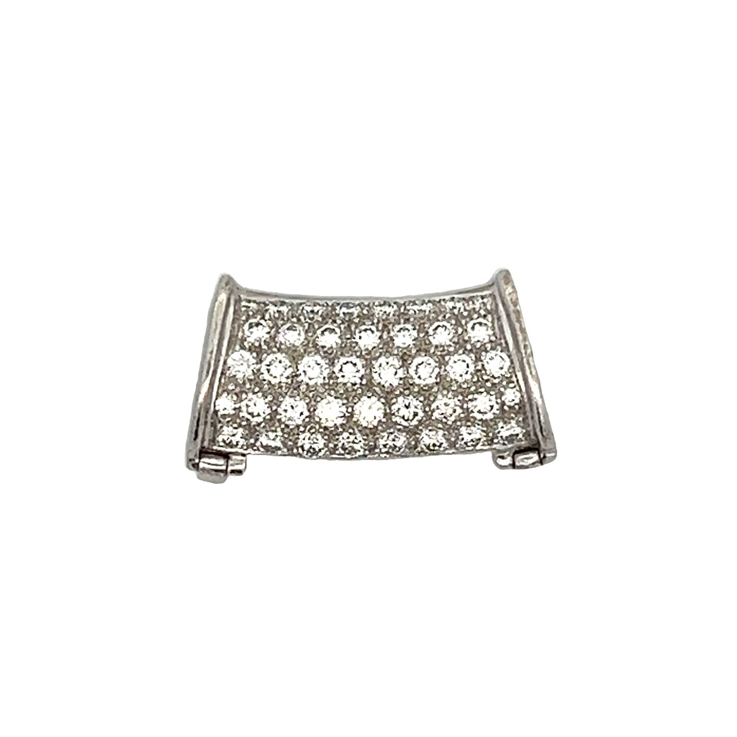 This modern pendant features round brilliant cut diamonds in 18k white gold. The pendant has forty (40) diamonds set in four rows across the front. The diamonds are housed in a smoothly polished casing that allows this stylish omega slider to stay in place. The diamond have a gorgeous G color and VS2 clarity that further enhances the sparkle. A versatile piece that can be styled by itself or layered with other necklaces.