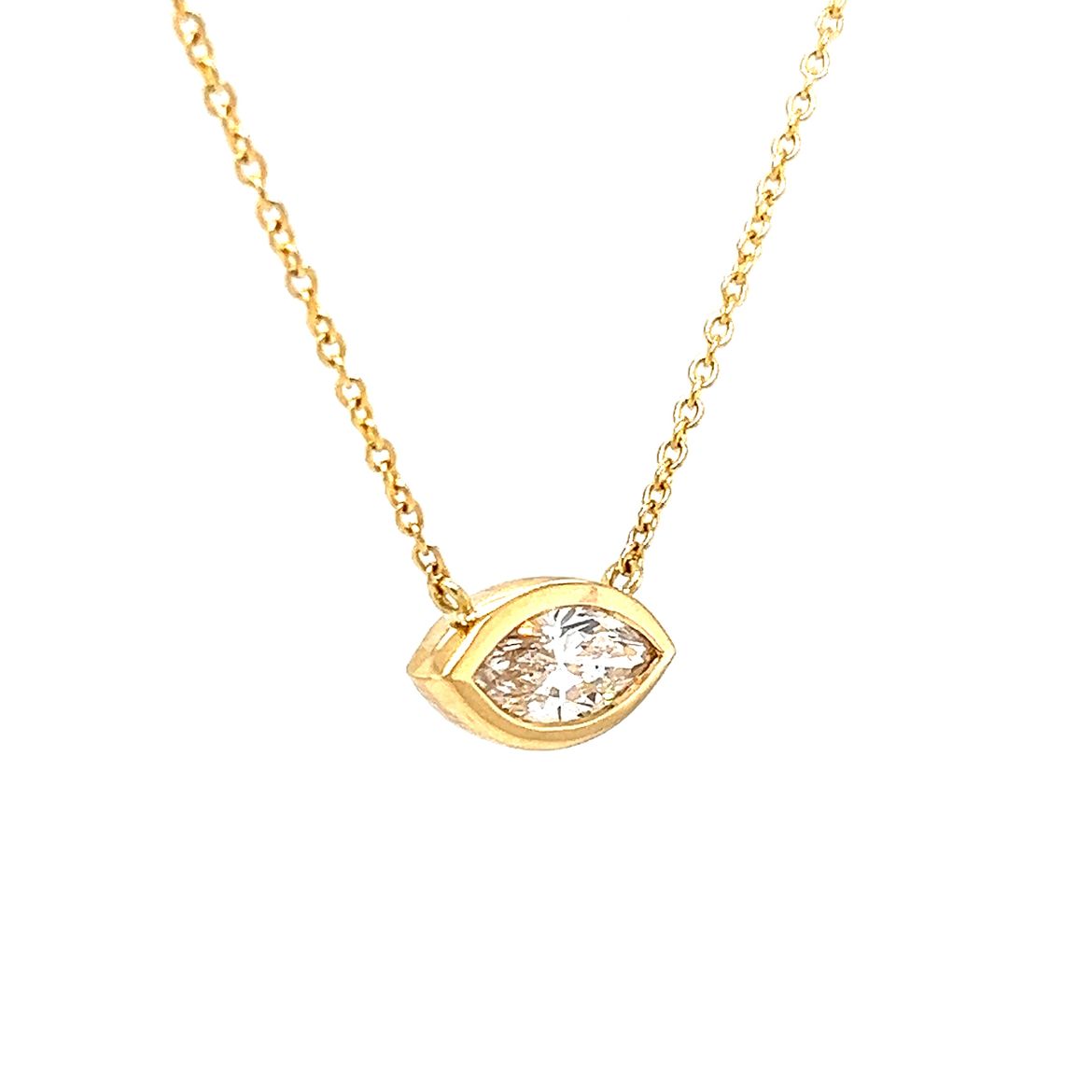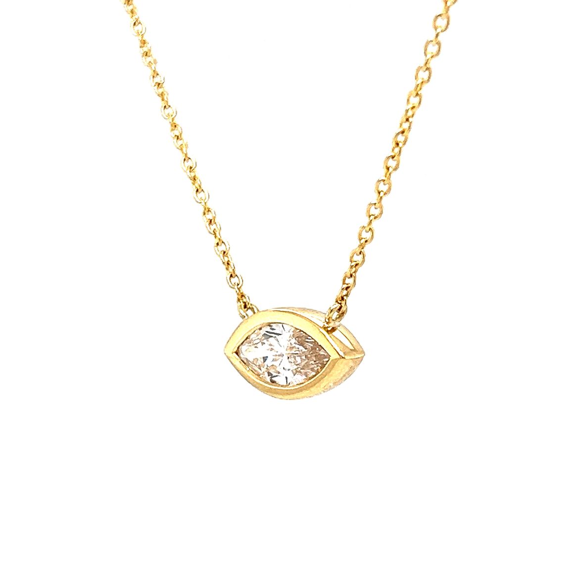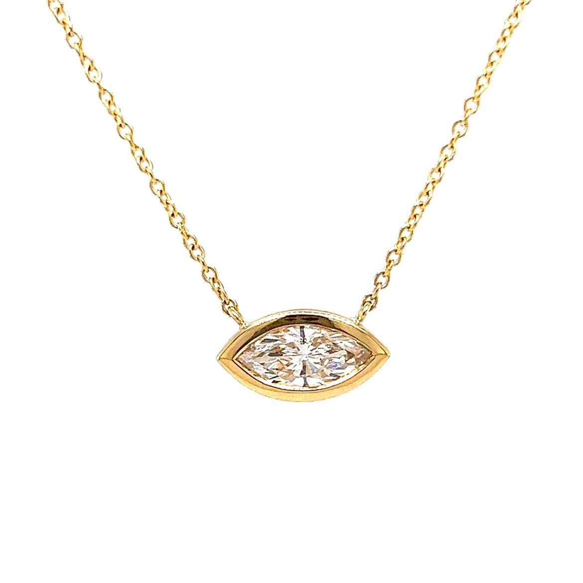 1.12 Marquise Cut Diamond Bezel Pendant Necklace in 18k Gold