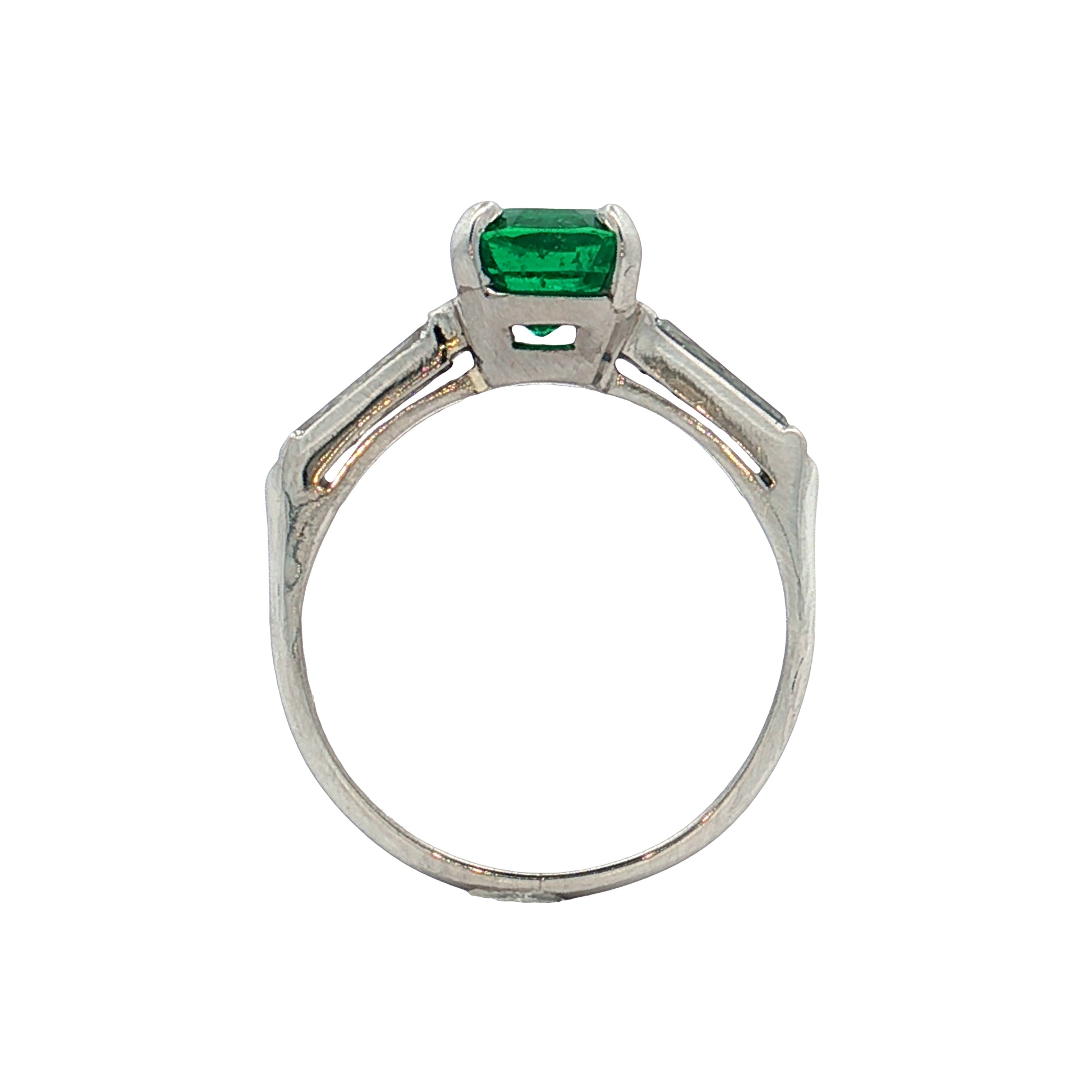1.12 Vintage Cushion Emerald Engagement Ring Platinum