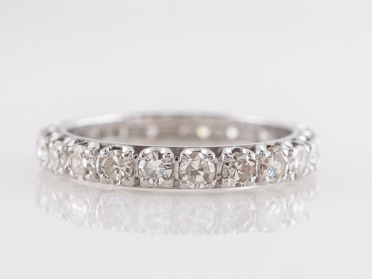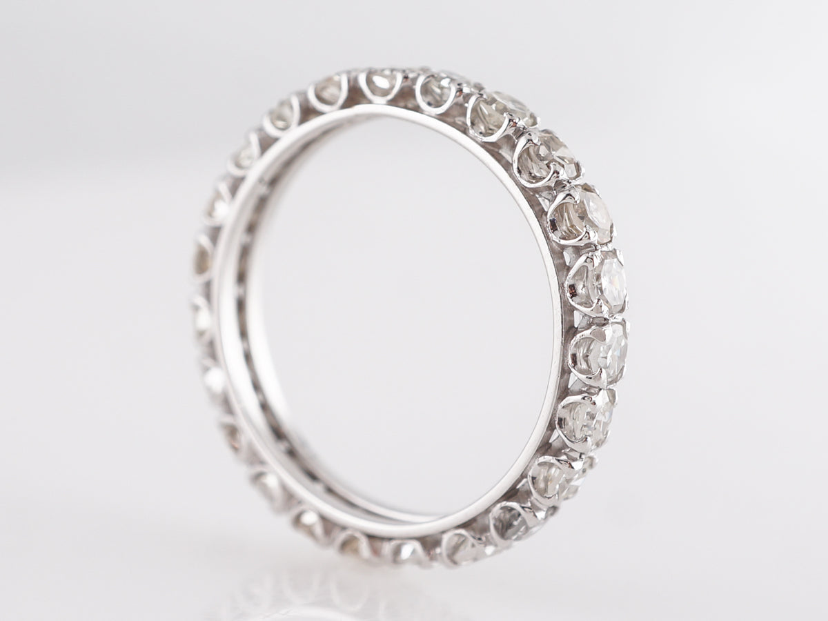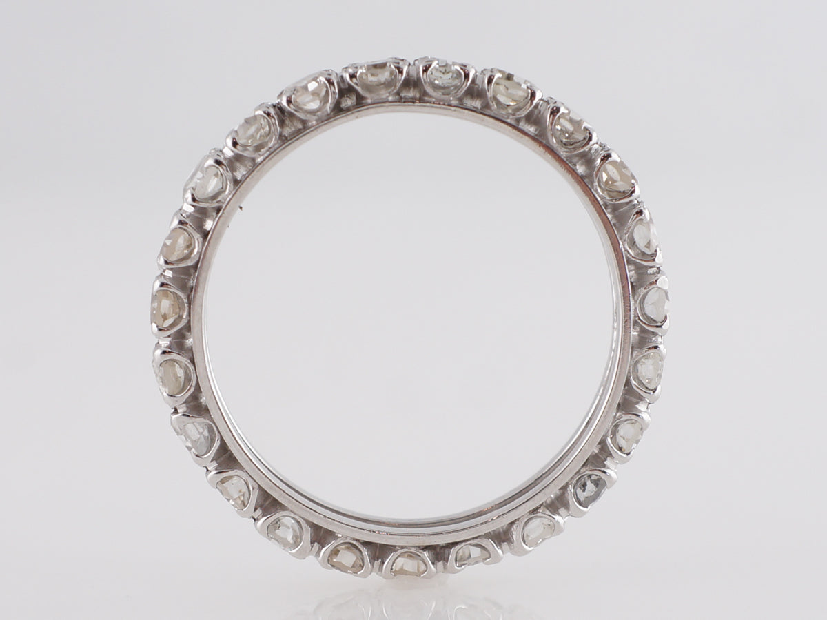 1.15 Single Cut Diamond Wedding Band in 14k White Gold. This dazzling modern eternity band features 1.15 carats of single cut diamonds set in 14 karat white gold. The diamonds are set with shared prongs, which gives the band a smoother transition between each stone and adds to the overall diamond look. This would be a wonderful wedding band, or could make a fabulous right hand ring.