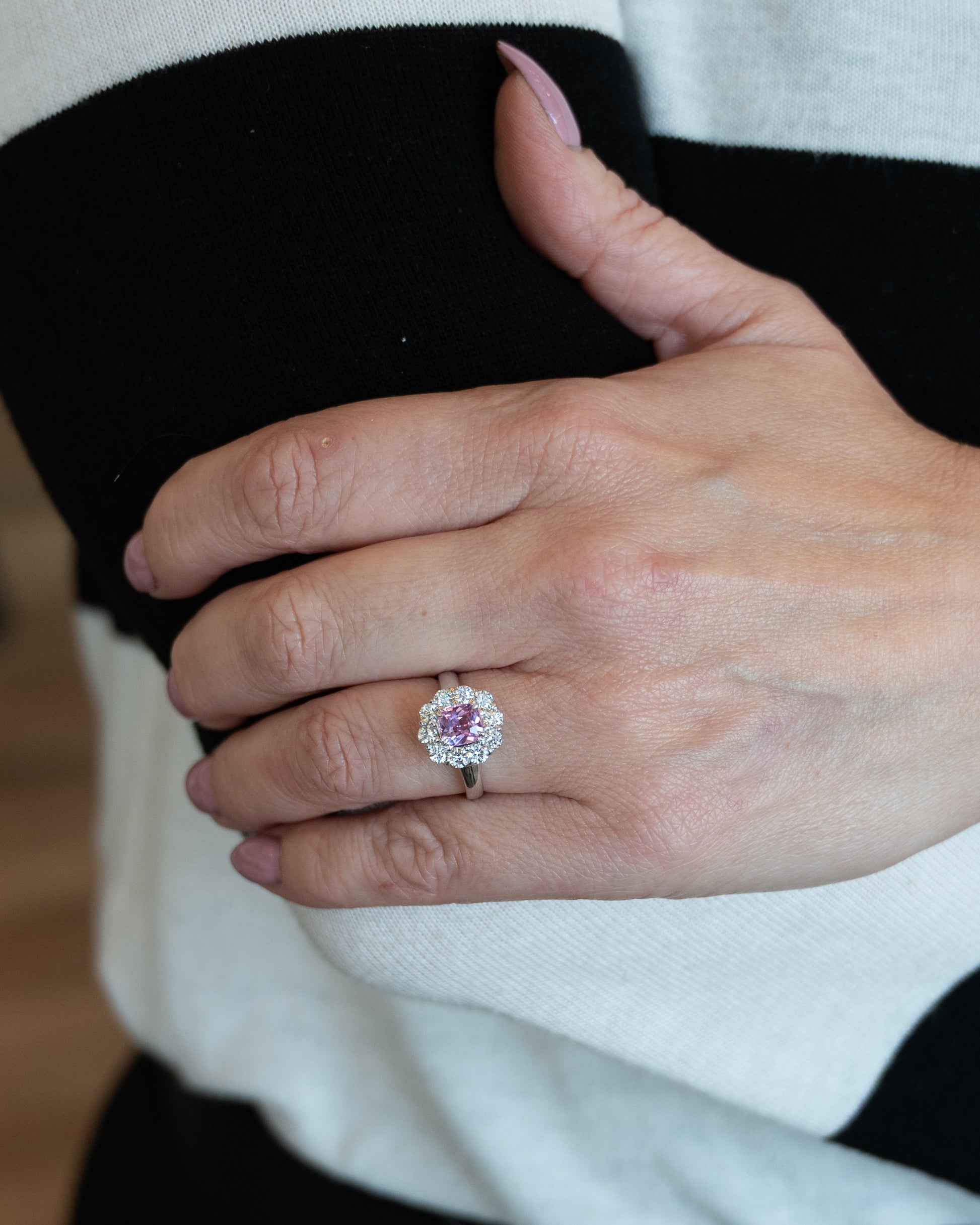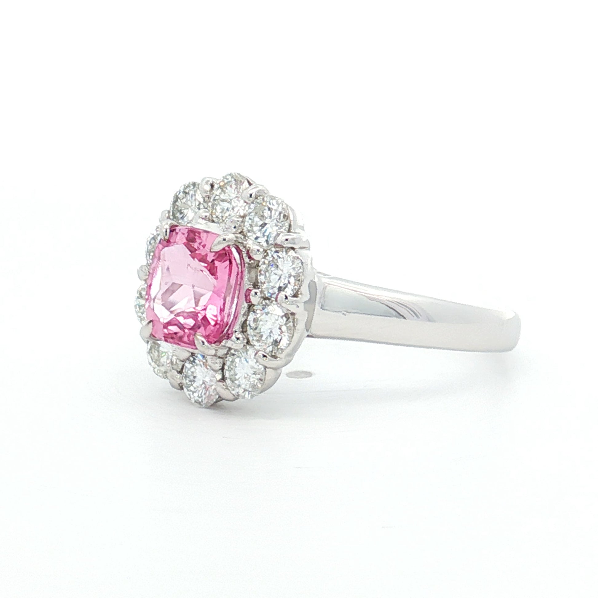 1.23 Cushion Pink Sapphire Engagement Ring Platinum