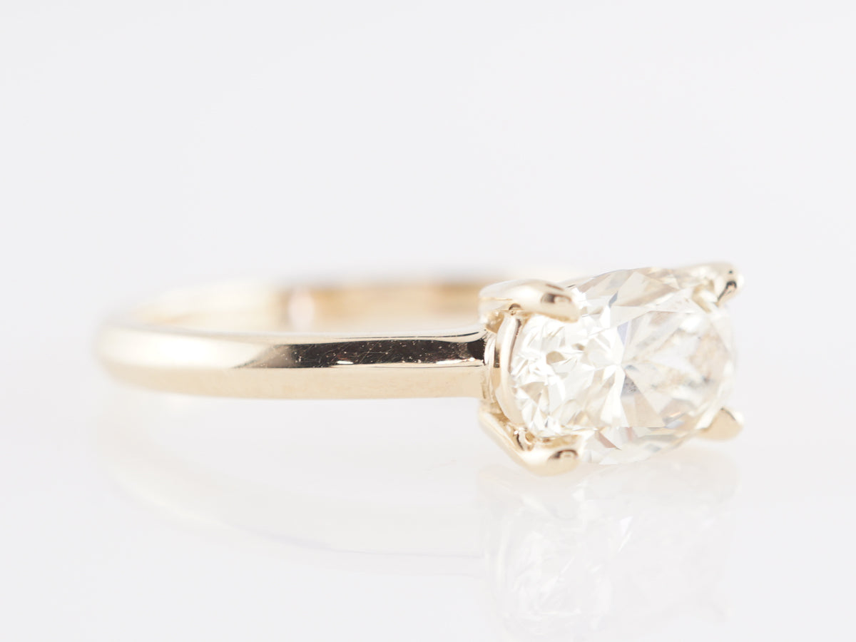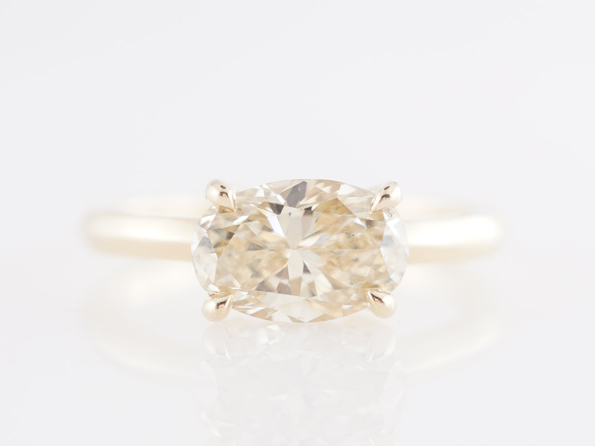 1.25 Fancy Yellow Diamond Engagement Ring in Yellow Gold. This fabulous 1.25 Carat GIA Certified Oval Diamond Engagement Ring is set with four prongs on a straight, 14k yellow gold band. This eye-catching diamond engagement ring will look dazzling on your special someone. GIA certified to ensure the highest quality gem. Need help choosing a fitting wedding band to pair with this Modern-era ring? Contact one of our experts for more details!