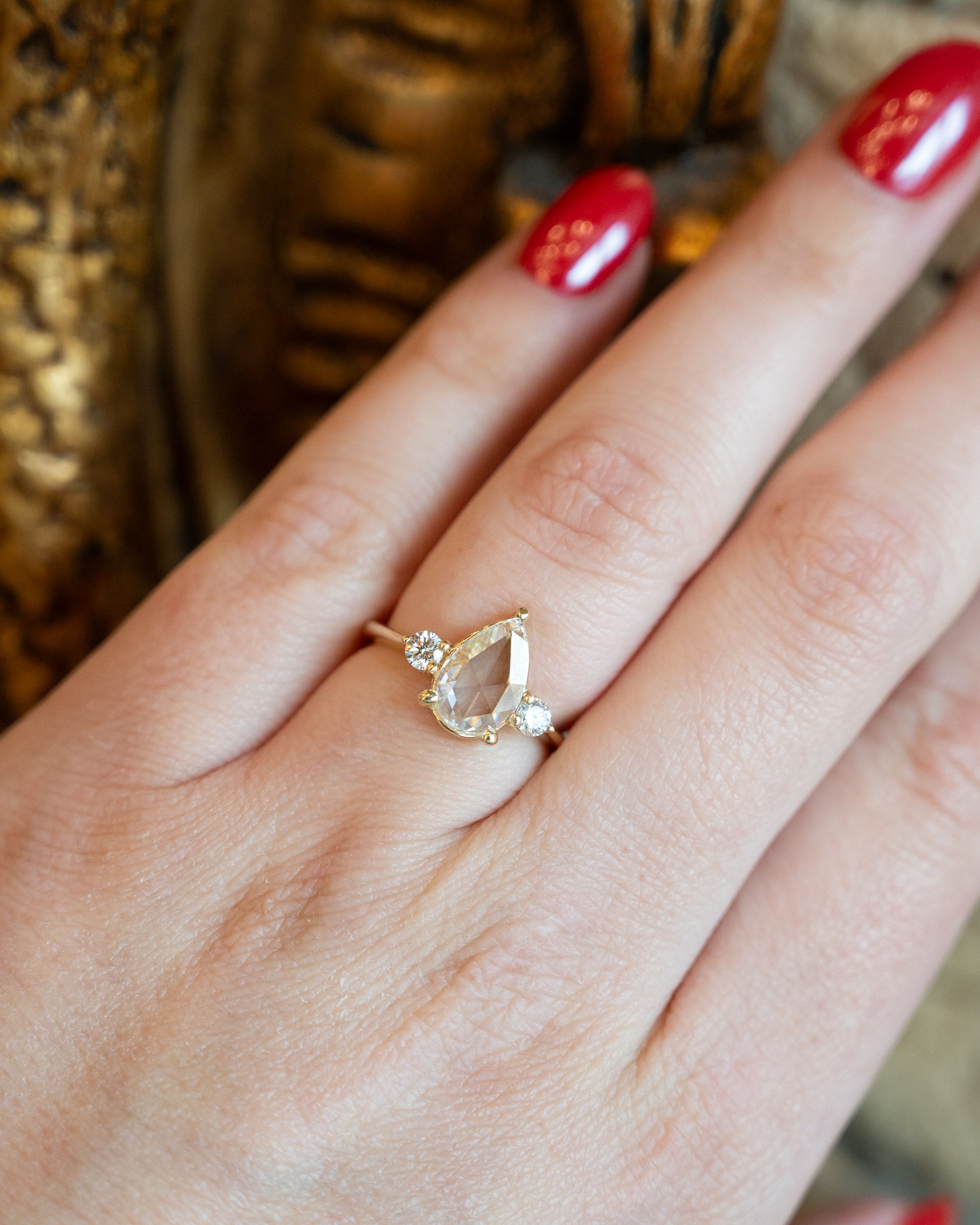 1.25 Pear Rose Cut Diamond Engagement Ring in 14k