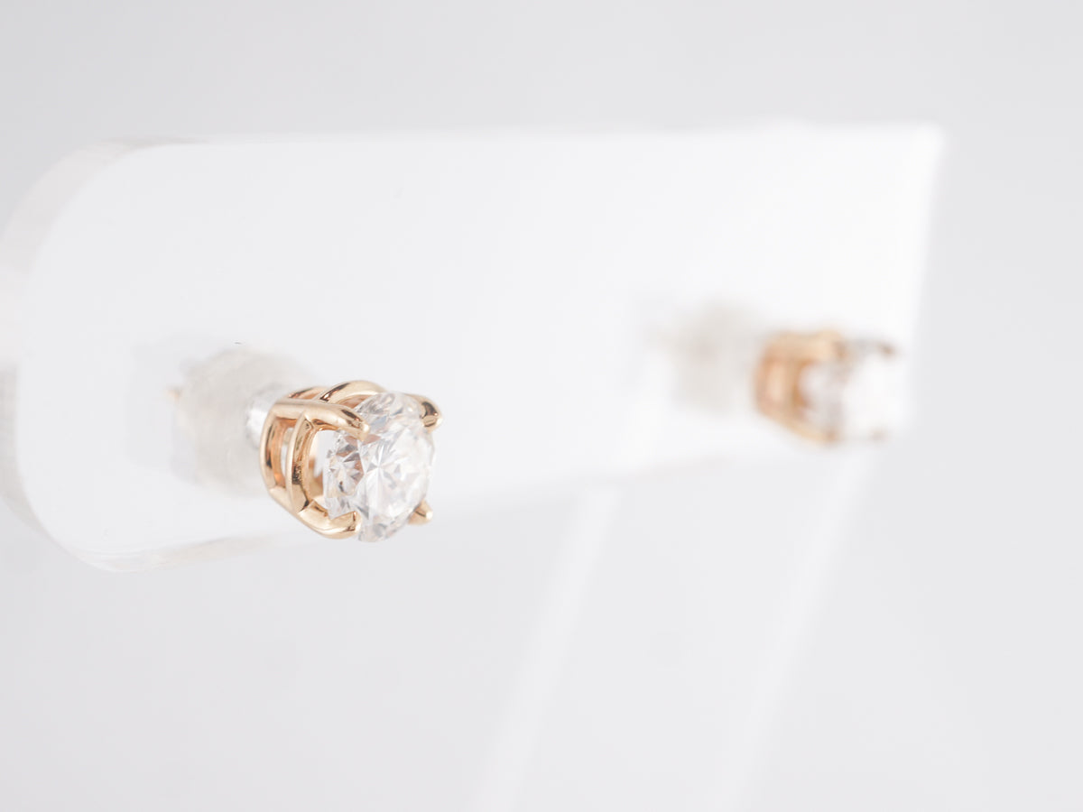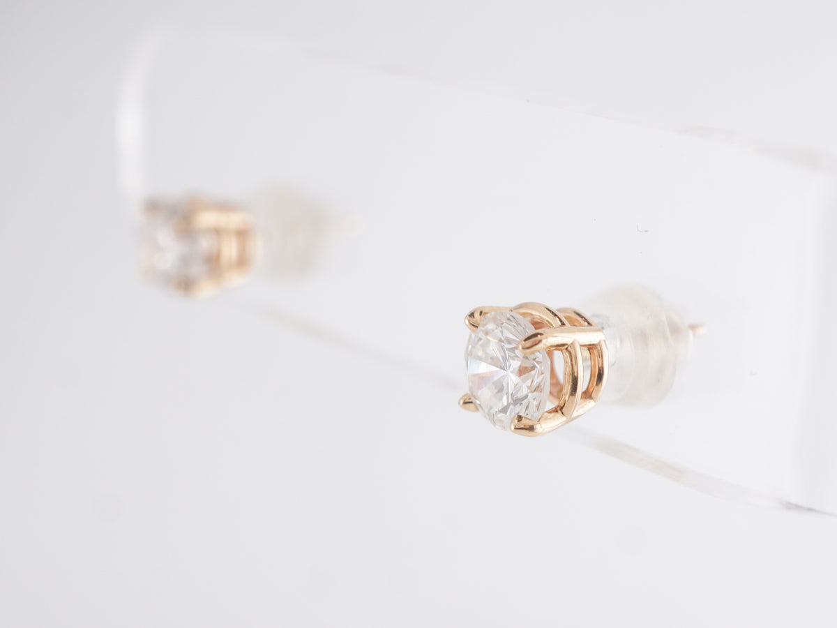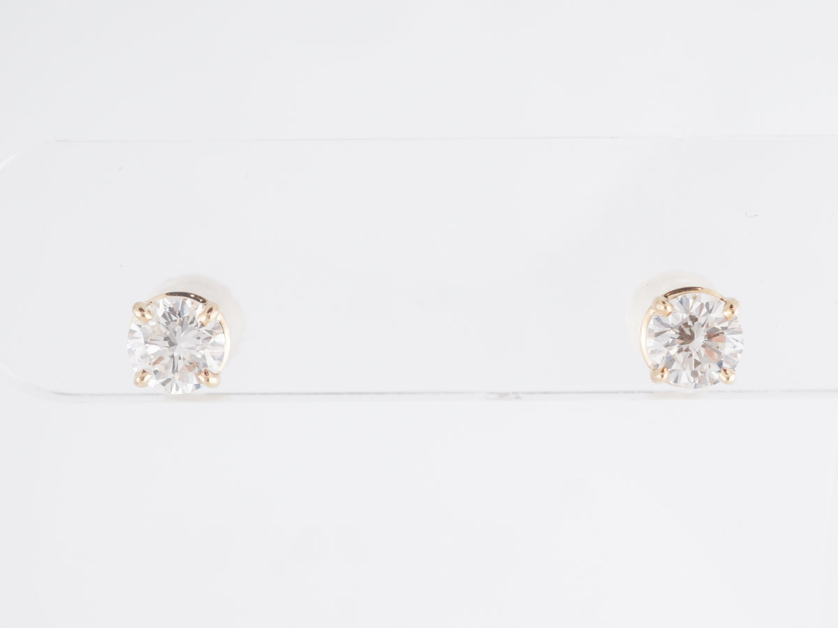 1.25 Simple Diamond Earring Studs in 14k Yellow Gold. These modern stud earrings have a magnificent sparkle with their 1.25 carats of round brilliant cut diamonds set in 14 karat yellow gold. The diamonds are each set with four (4) prongs and allow enough light in to really shine! These could be worn just about anywhere, with any outfit!