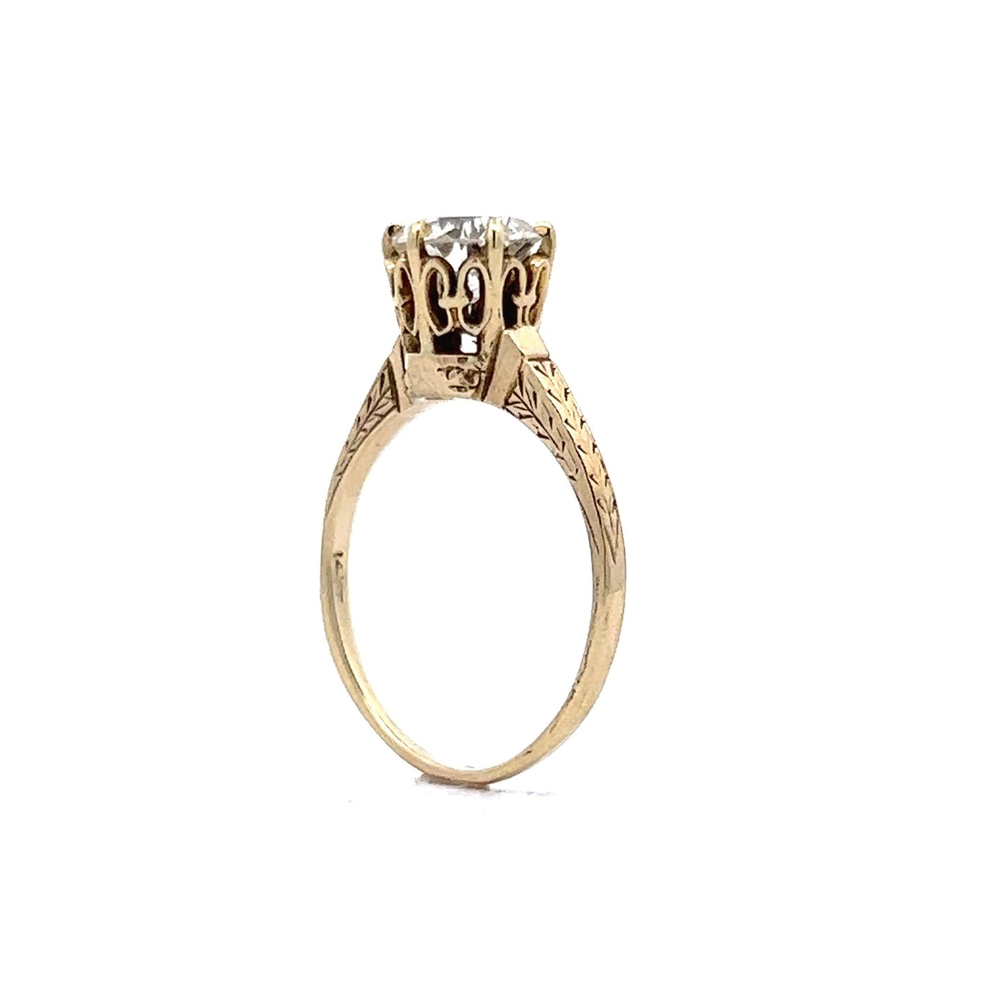 1.26 Solitaire Art Deco Diamond Engagement Ring in 14k Gold