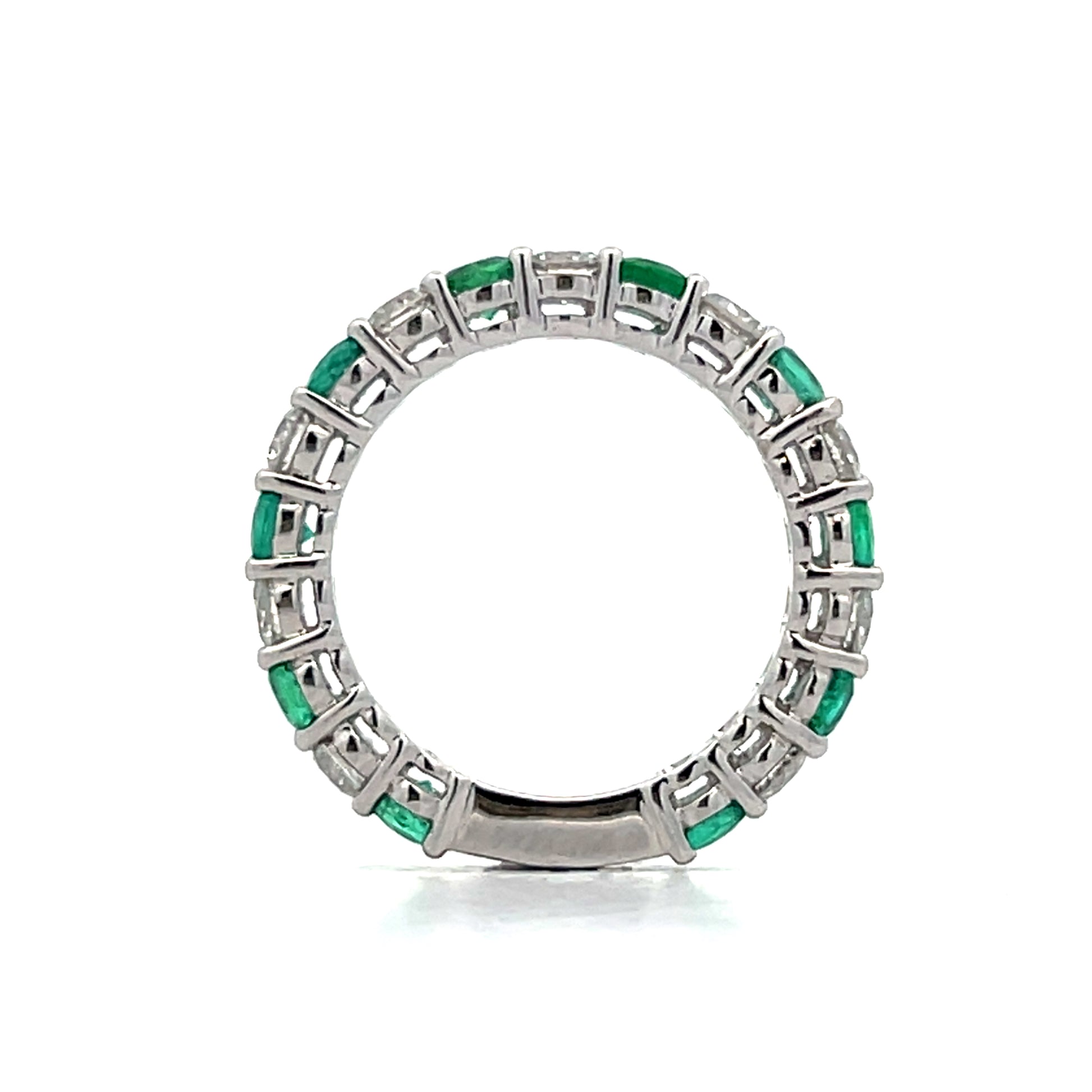 1.30 Emerald & Diamond Wedding Band in 18k White Gold