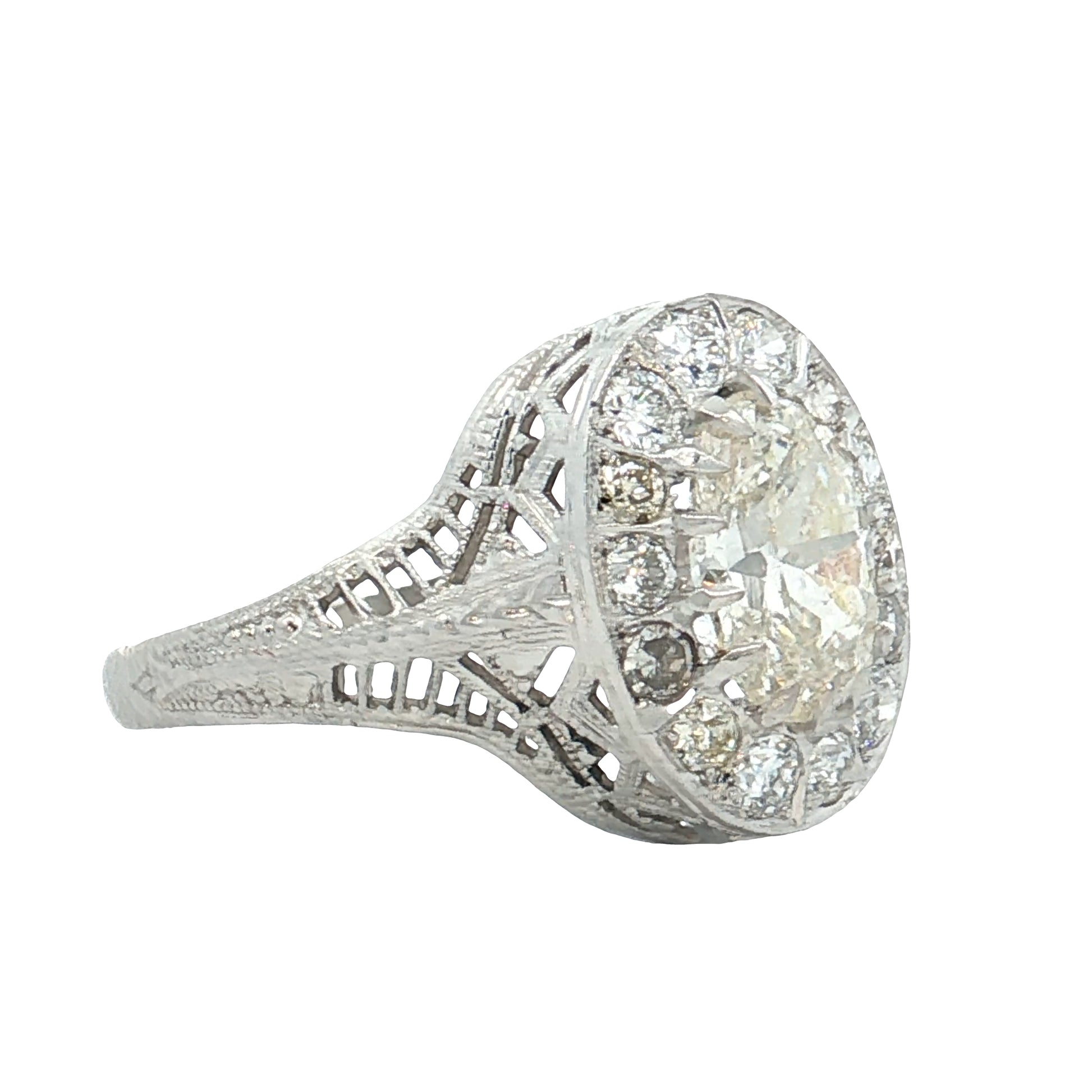 1.37 GIA Antique Oval Diamond Engagement Ring 18k