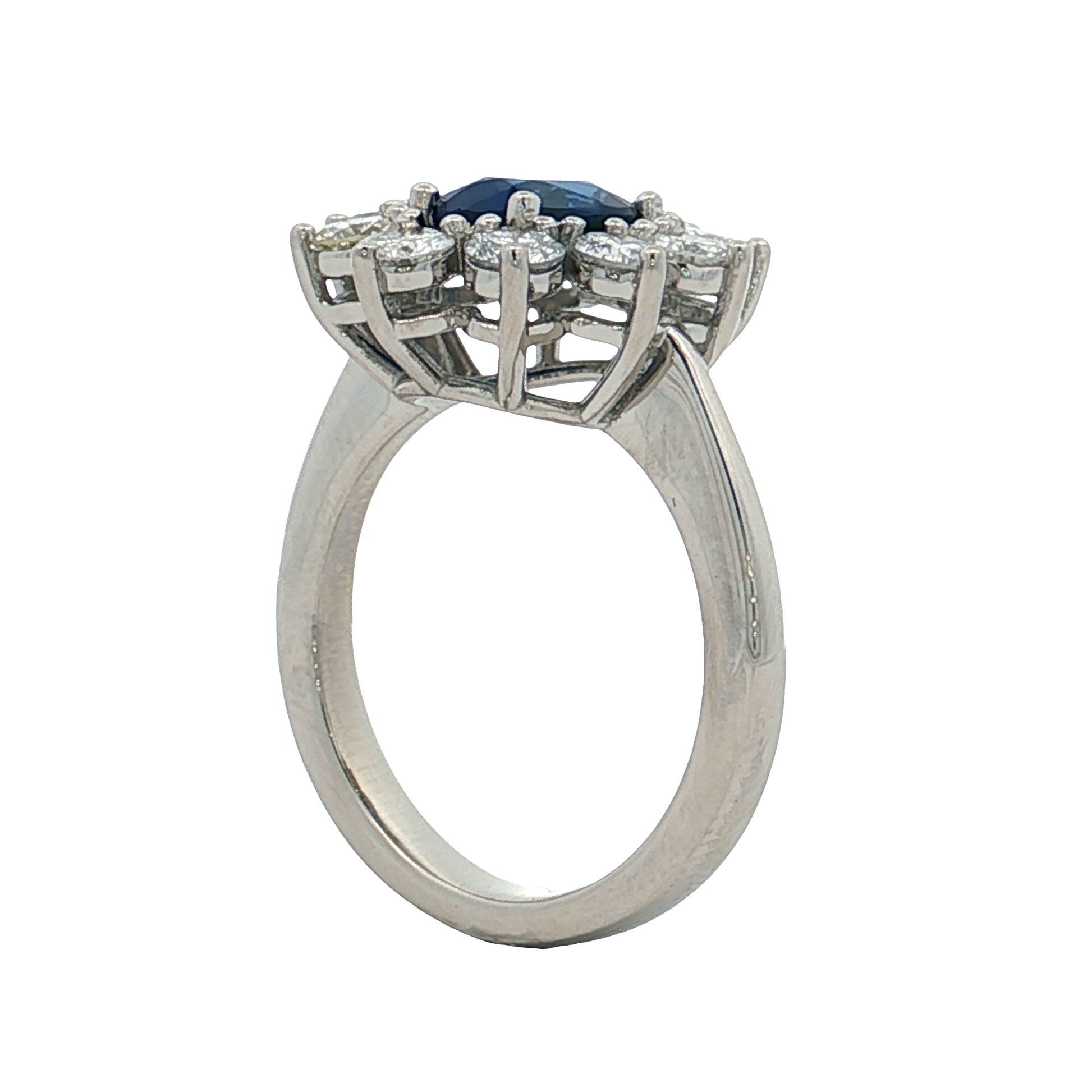 1.39 Oval Blue Sapphire and Diamond Halo Ring in Platinum