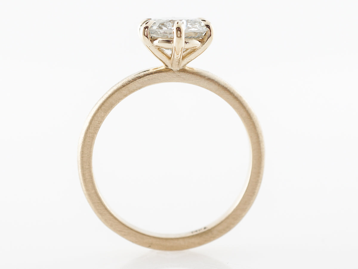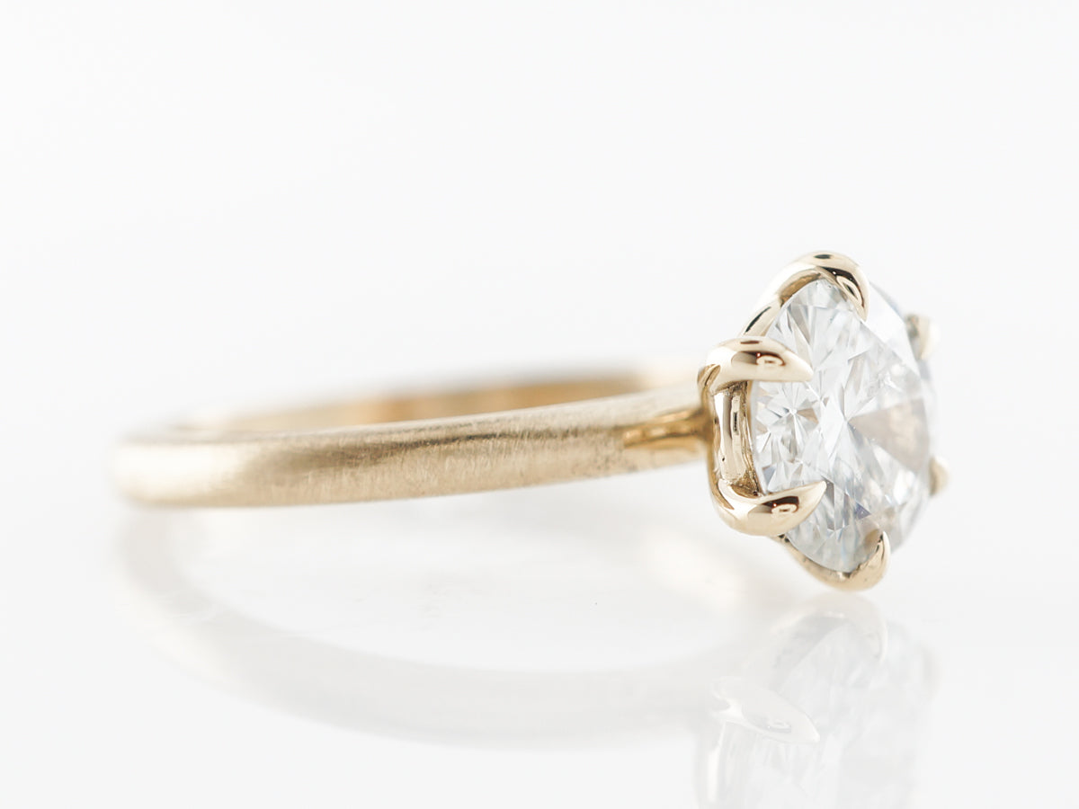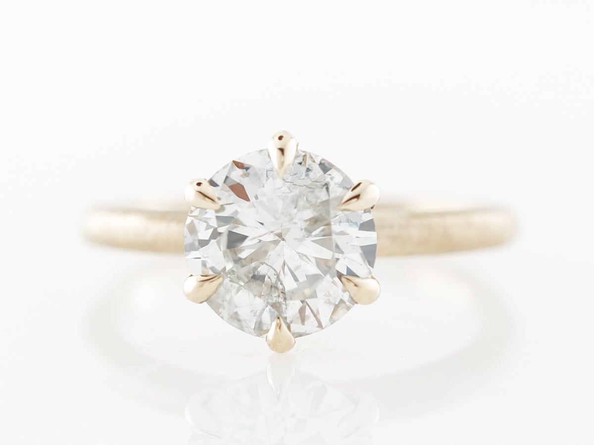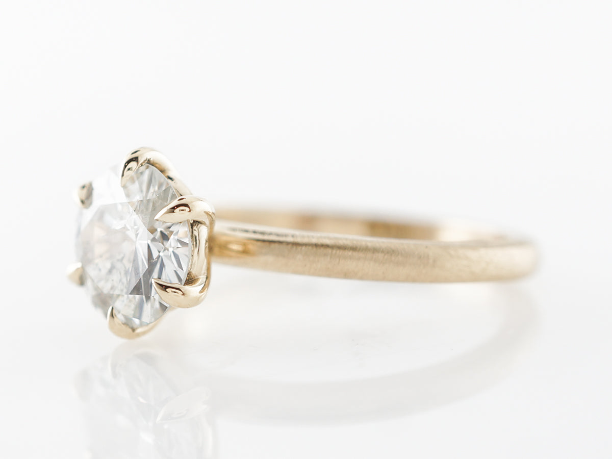1.44 Old European Diamond Solitaire Engagement Ring. This beautiful solitaire features a 1.44 carat round brilliant cut diamond set in 14 karat yellow gold. The gorgeous stone is set with six (6) prongs giving it very open sides that allow plenty of light to come into the diamond. This is a wonderful example of a classic style executed with great skill.