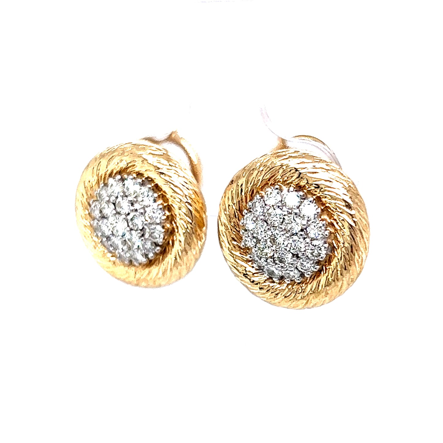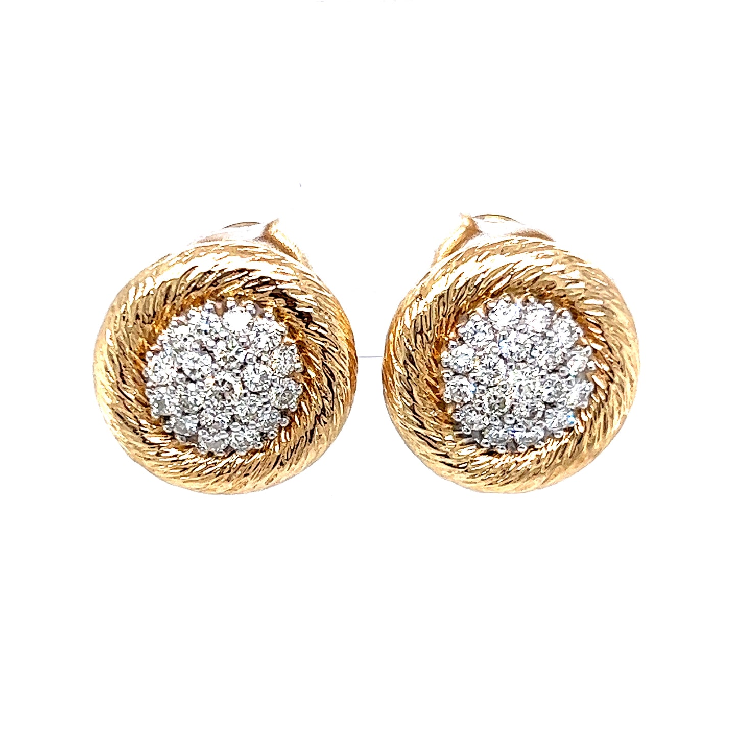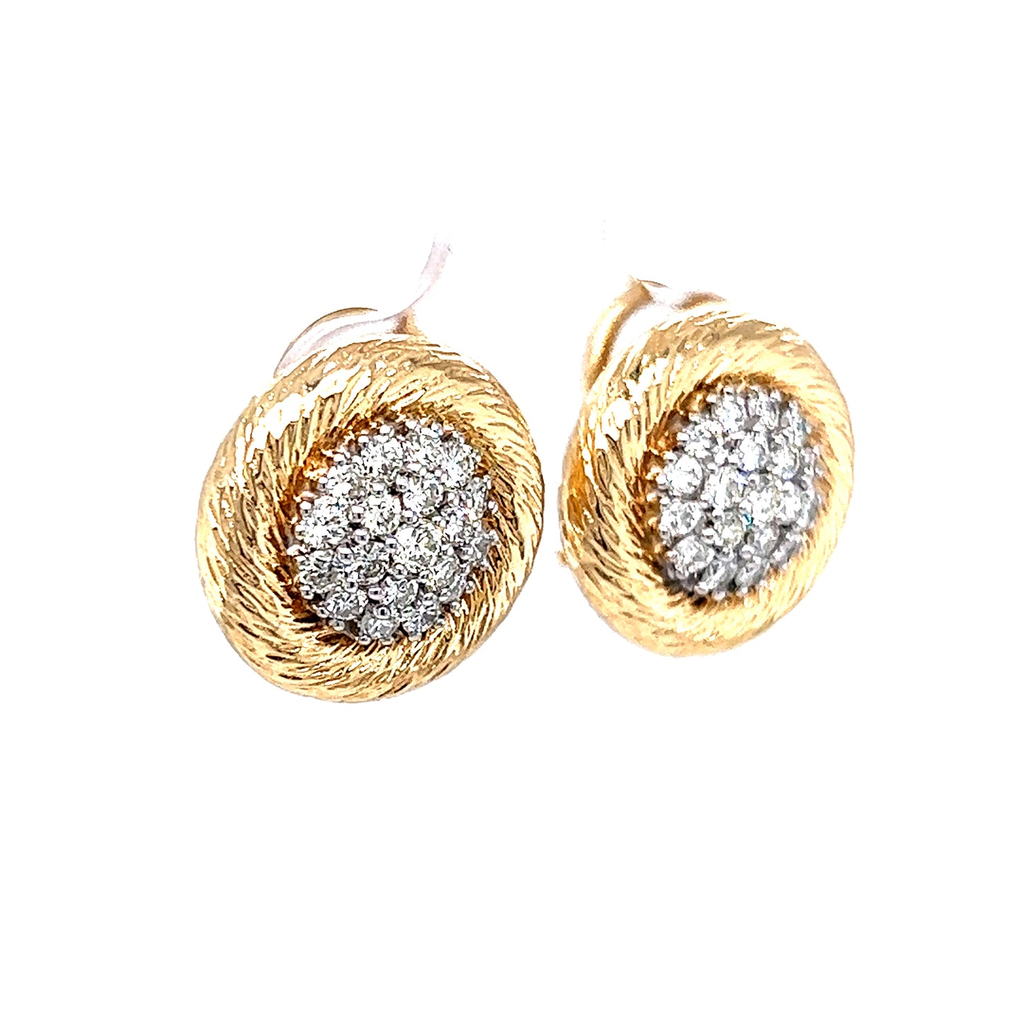 1.44 Pave Diamond Stud Earrings in 14k Yellow & White Gold