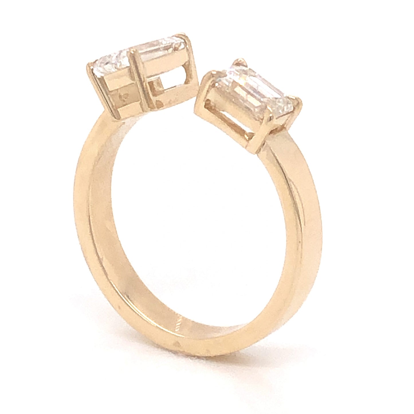 1.45 Emerald Cut Diamond Open Ring in 14k Yellow Gold