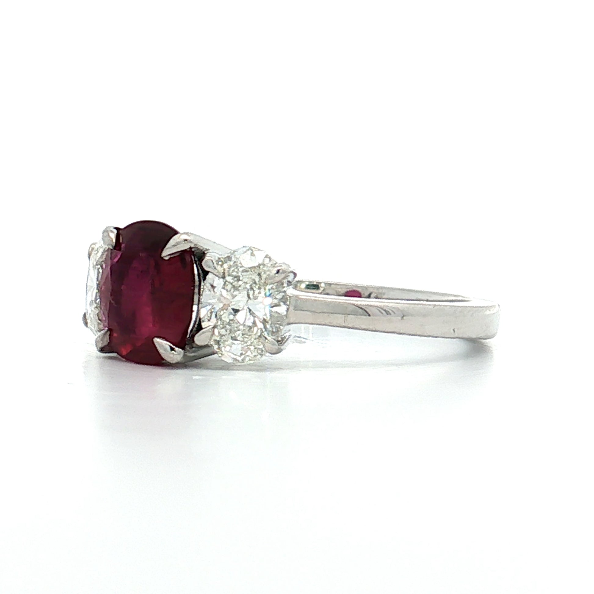 1.48 Ruby & Diamond Three Stone Ring 18k White Gold