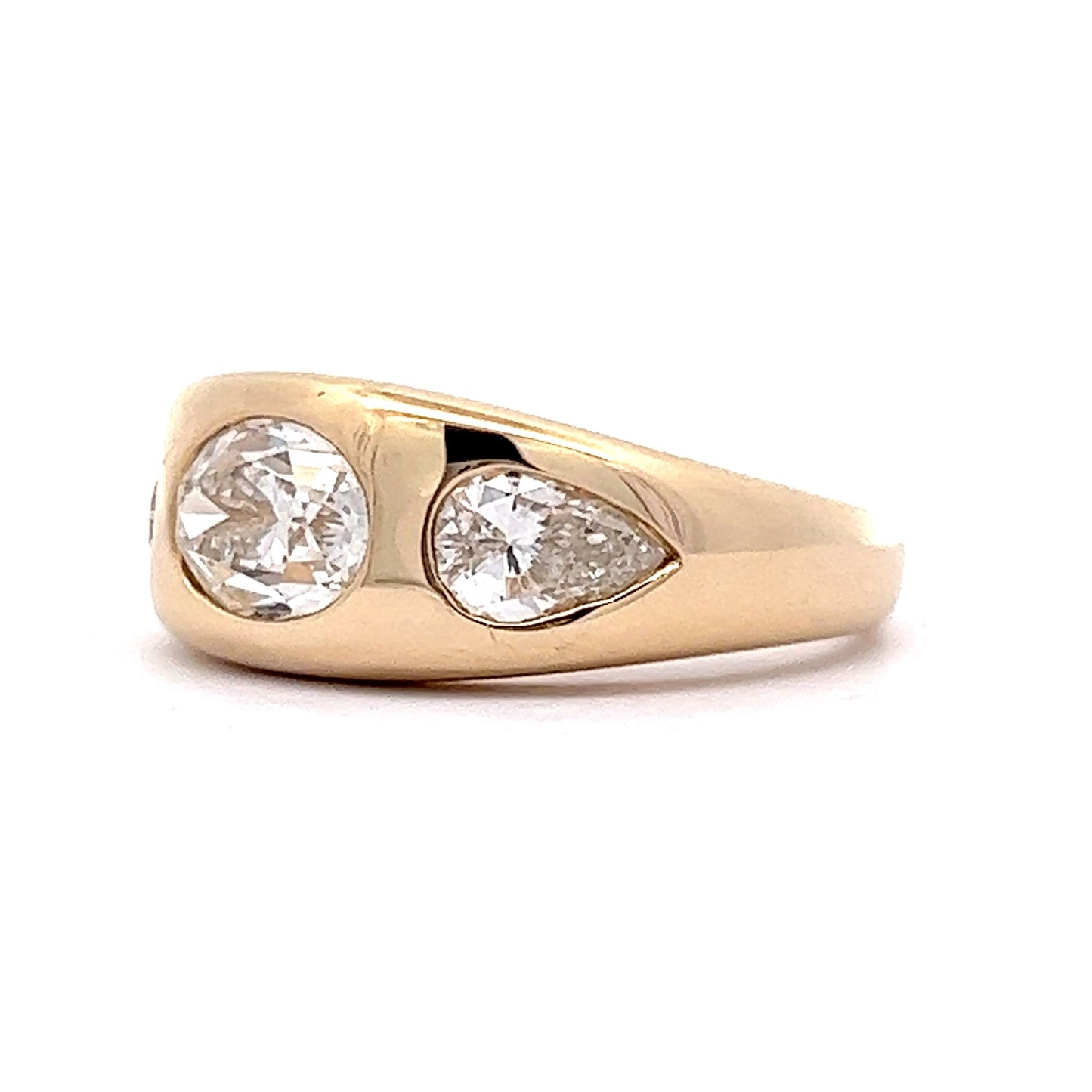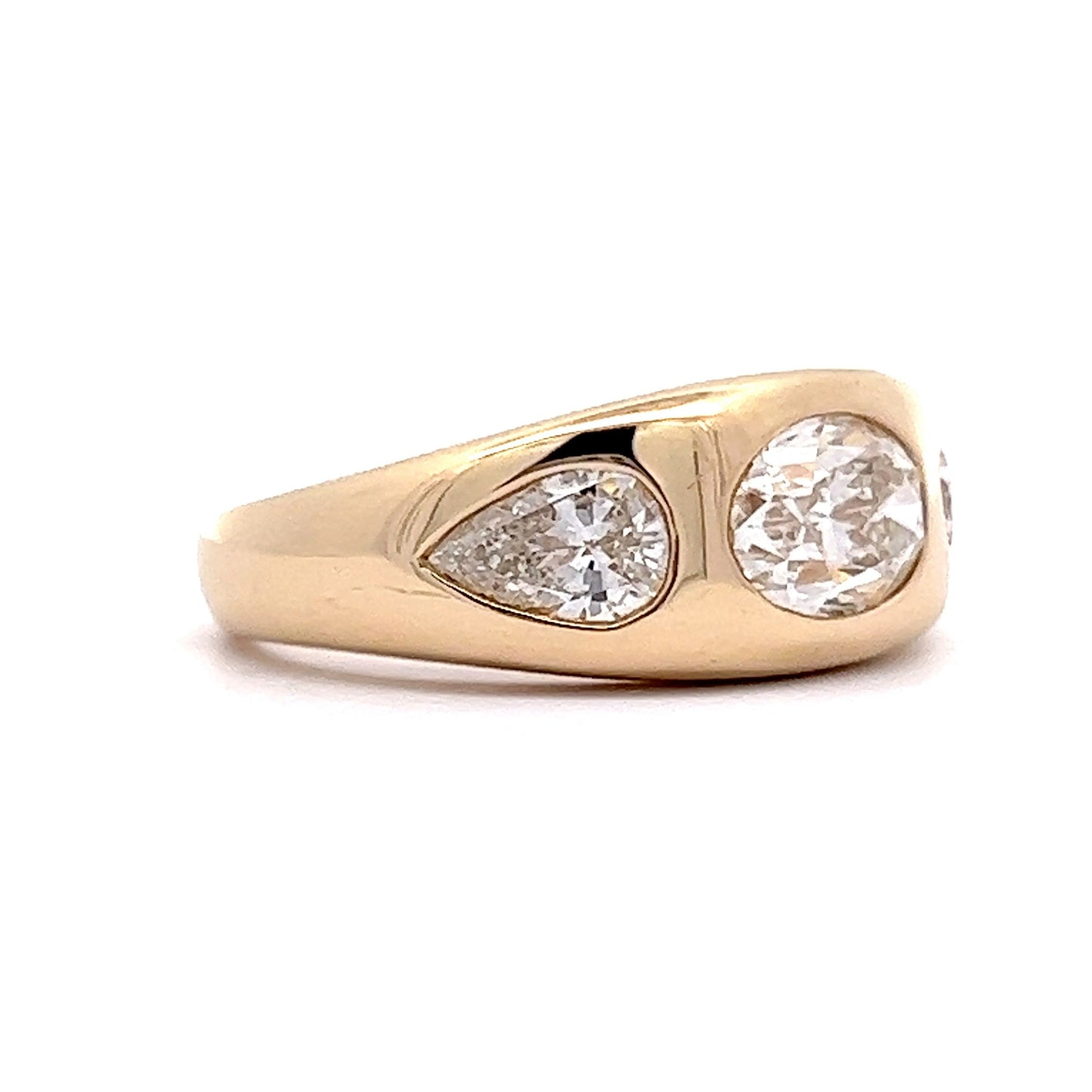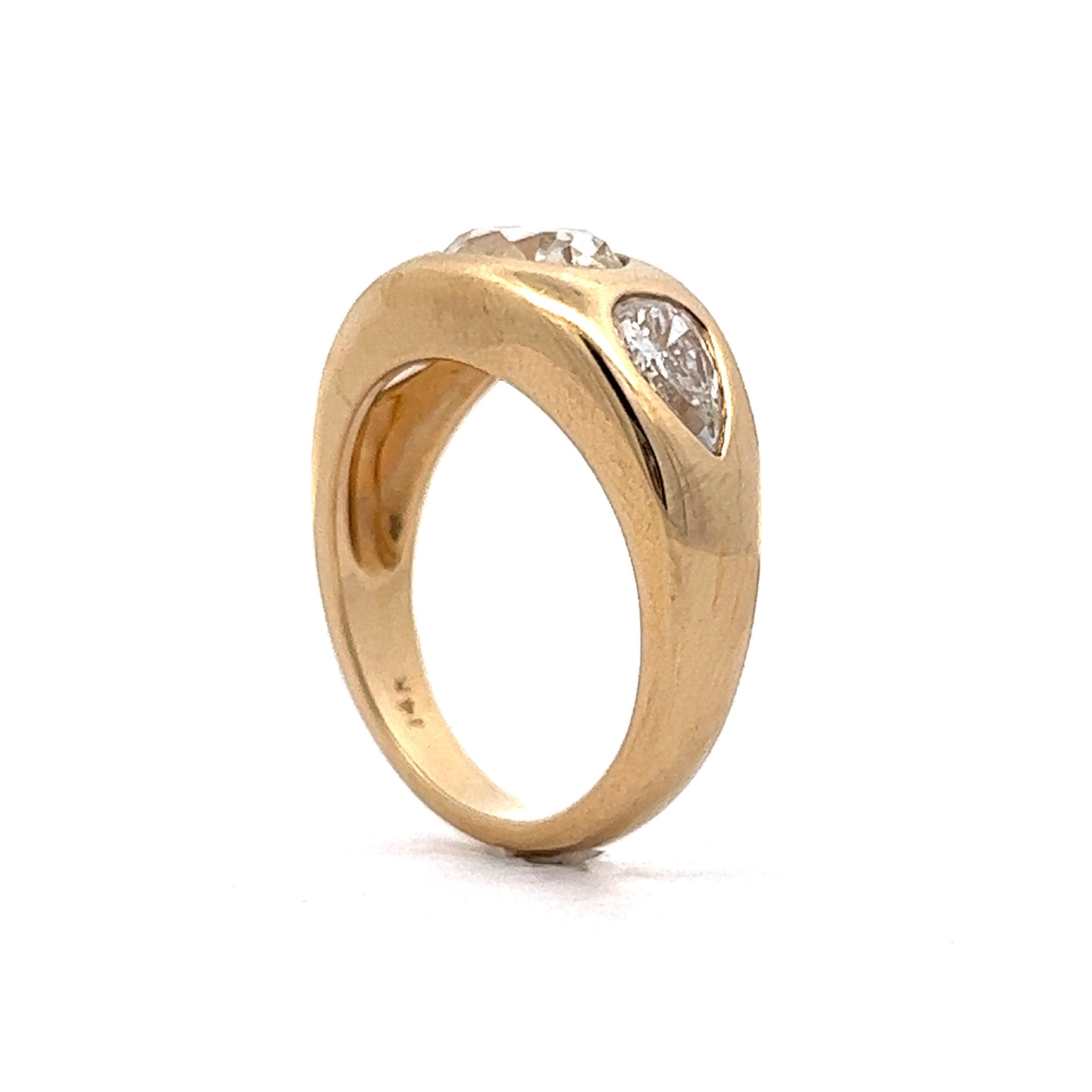 1.51 Three Stone Flush Set Diamond Cocktail Ring 14k Yellow Gold
