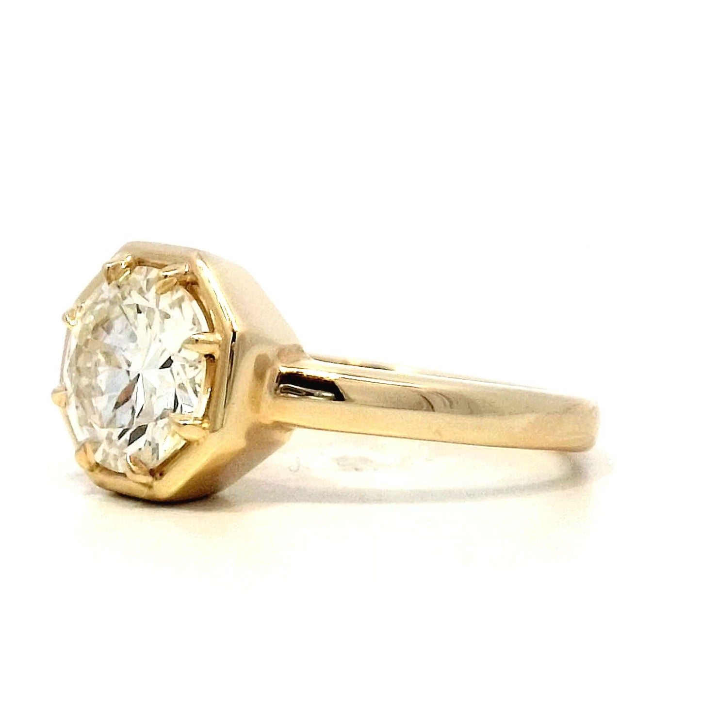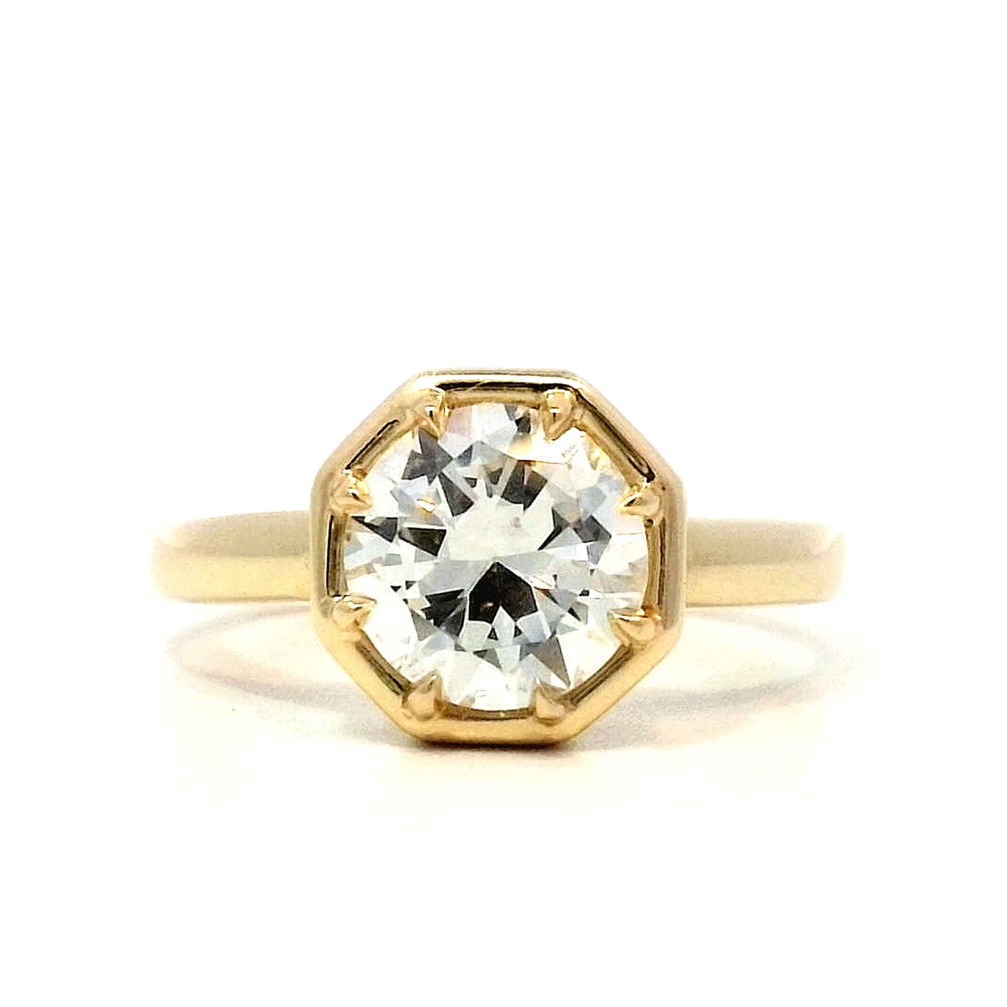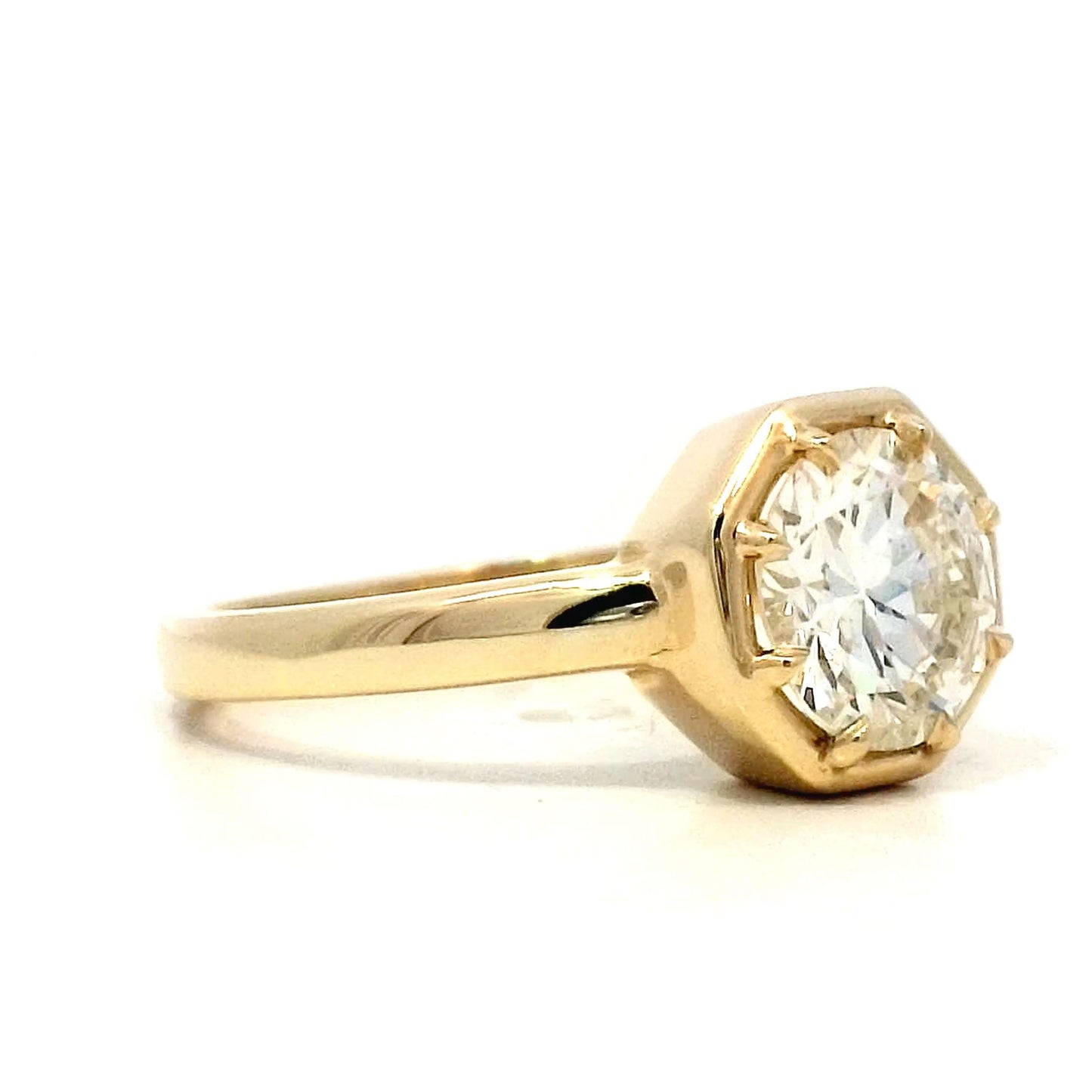1.61 Round Brilliant Octagonal Engagement Ring in Yellow Gold