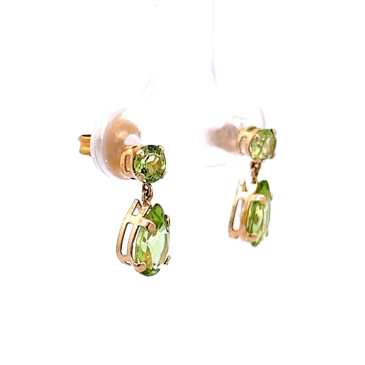 These modern earrings feature stunning pear cut peridots in 14 karat yellow gold. The pair of earrings includes two (2) peridot gemstones, each measuring 4mm and weighing .52 carats. The earrings are finished in a polished 14 karat yellow gold, providing the perfect backdrop for the stunning green gemstones. The perfect earrings to take you from day to night, these pear cut peridot drop earrings are sure to be a well worn accessory.