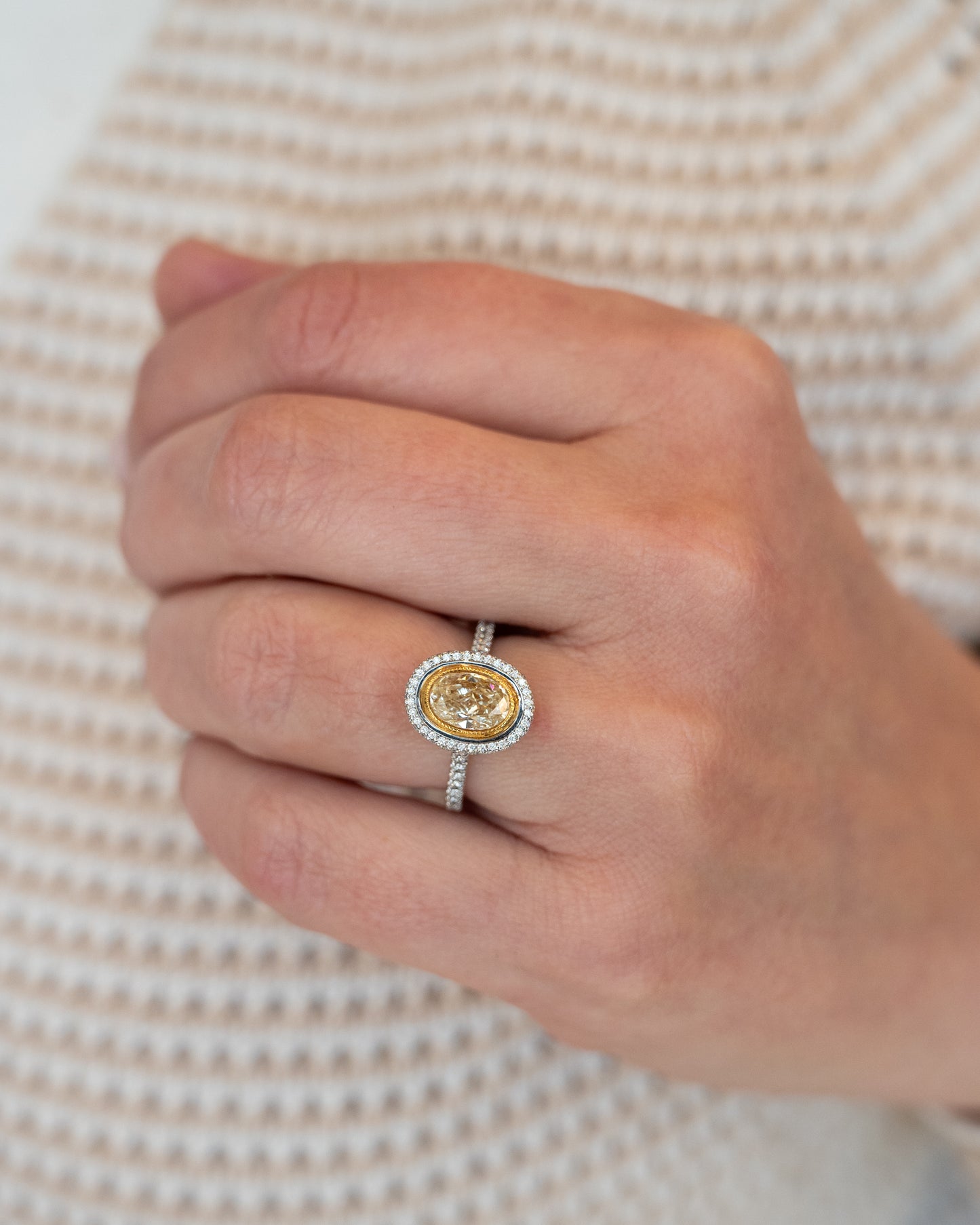 1.70 Oval Fancy Yellow Diamond Engagement Ring in 18k