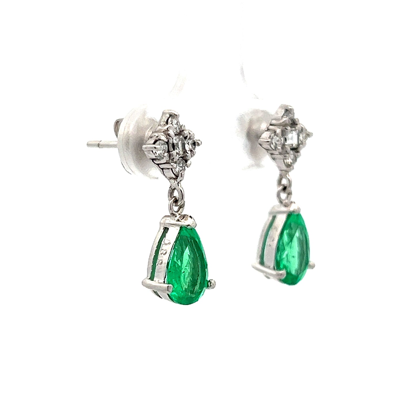 1.79 Pear Cut Emerald & Diamond Drop Earrings in White Gold