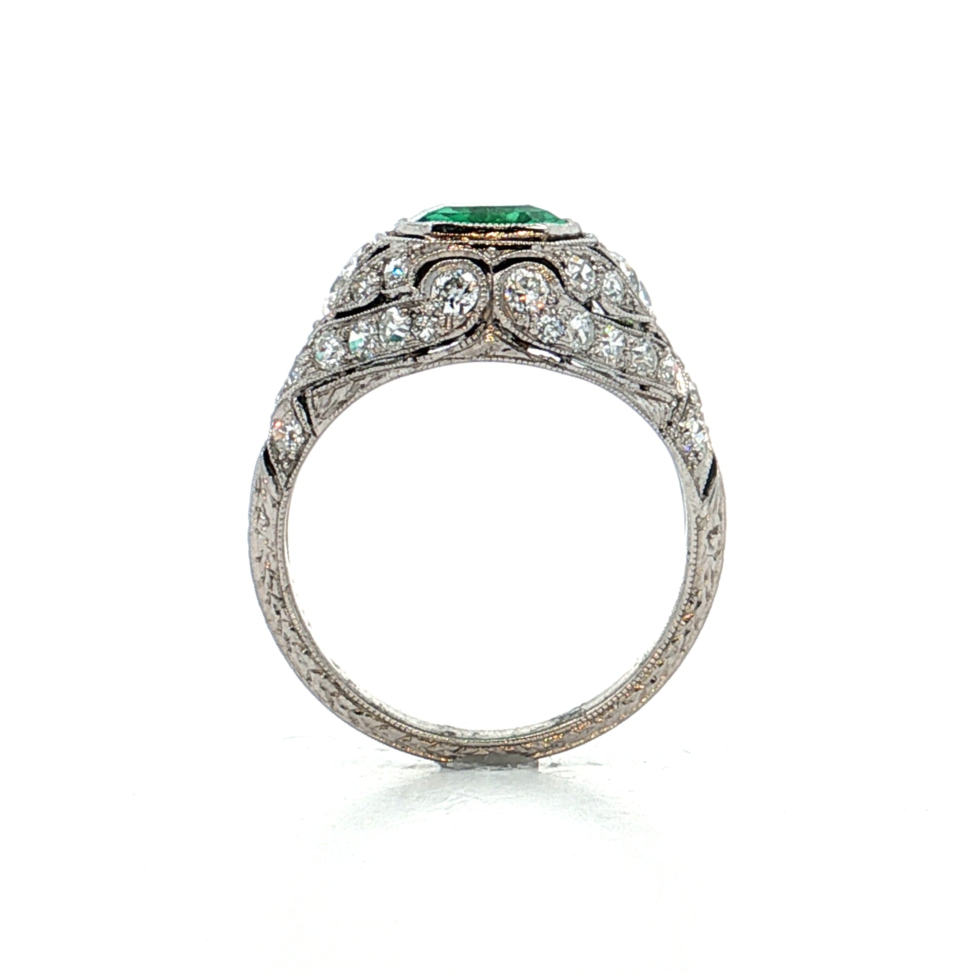 1.90 Antique Colombian Emerald & Diamond Ring Platinum