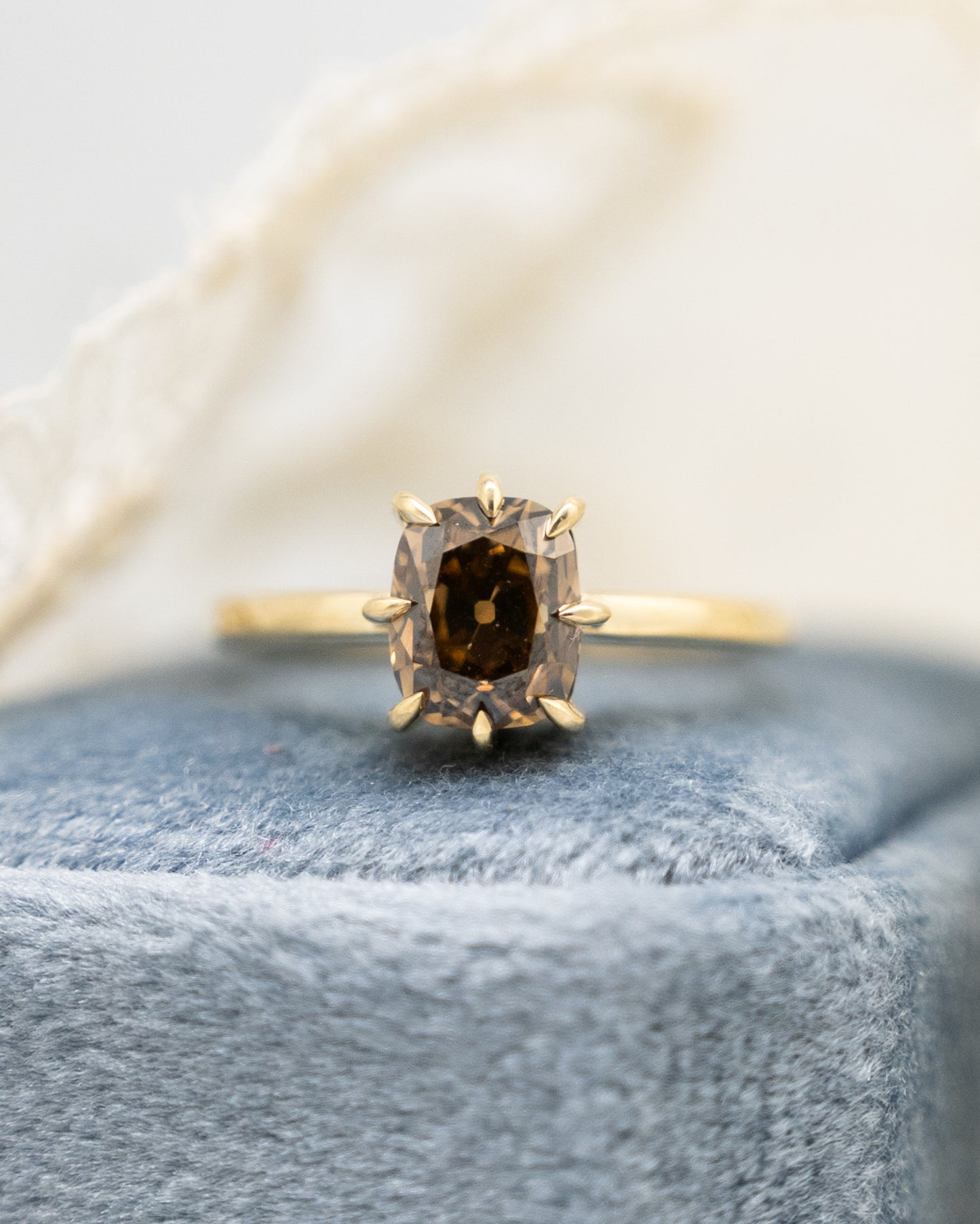 1.93 Fancy Brown Cushion Diamond Engagement Ring in 14k
