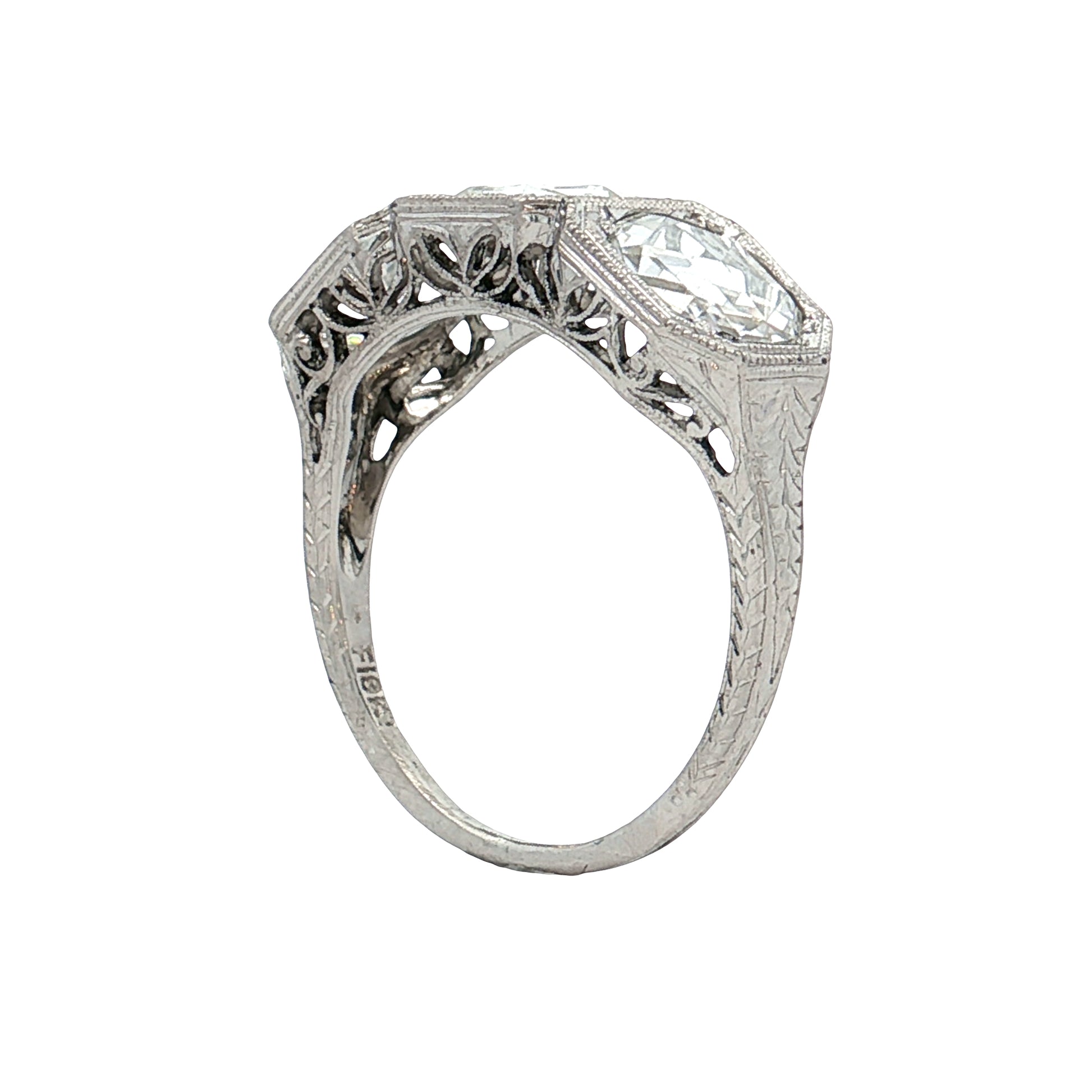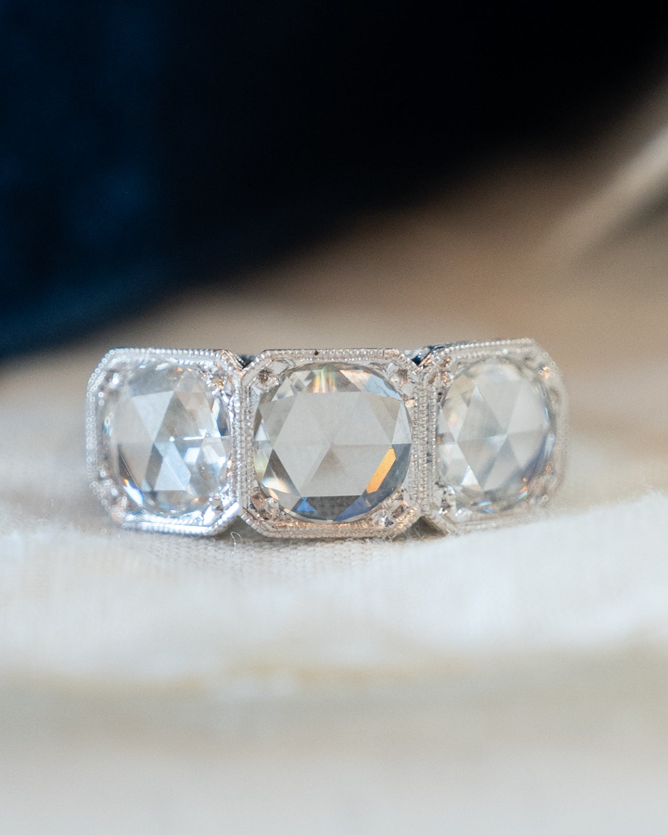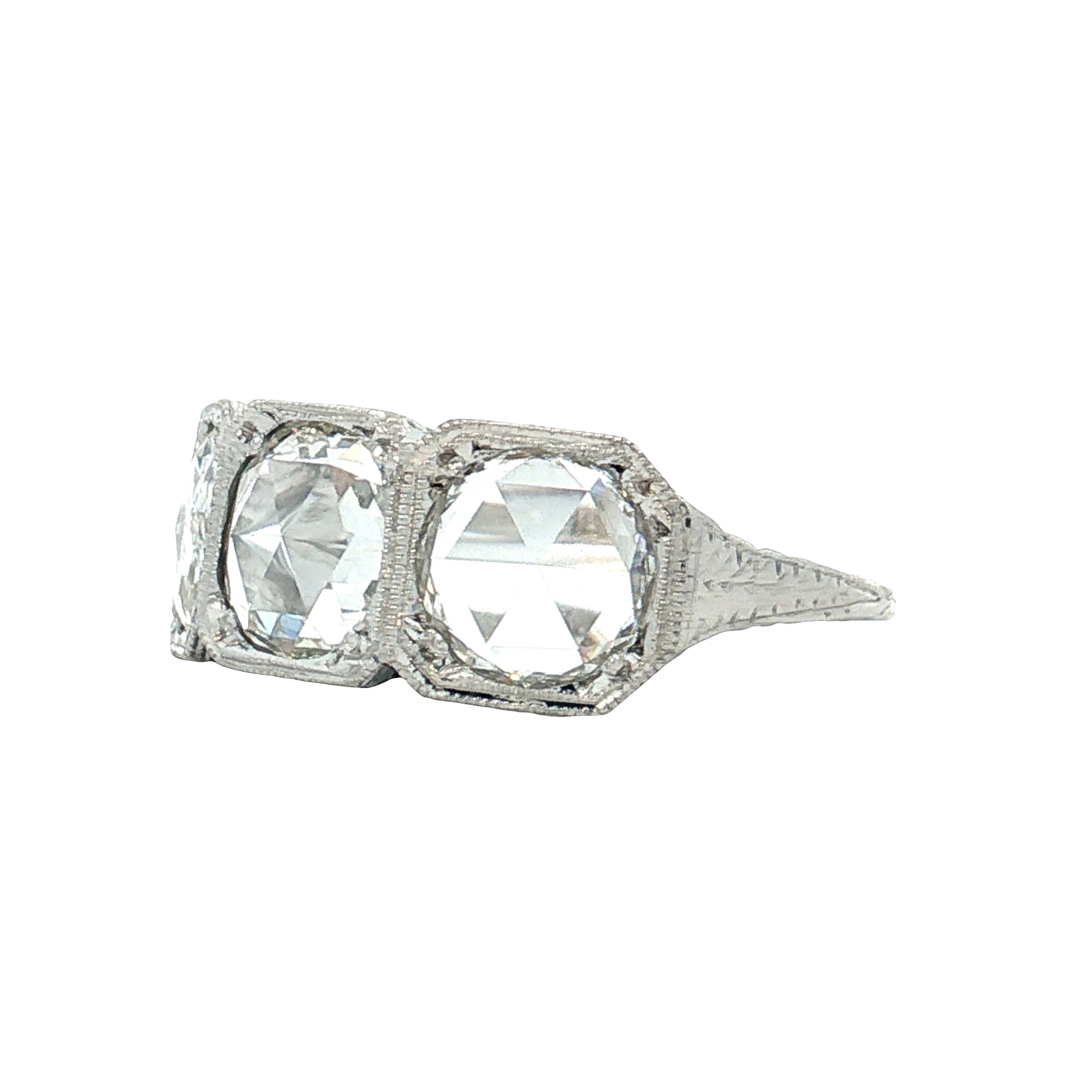 1.95 Antique Three Stone Rose Cut Diamond Engagement Ring 18k