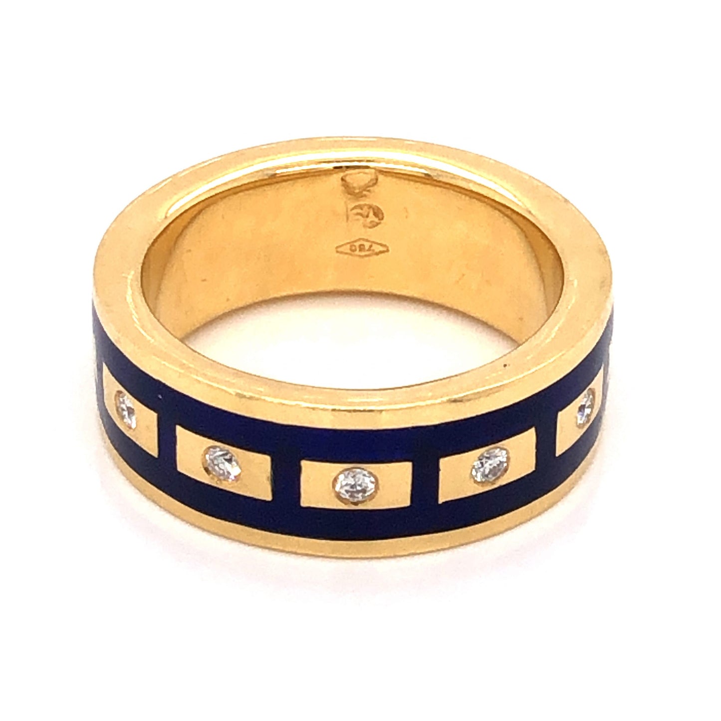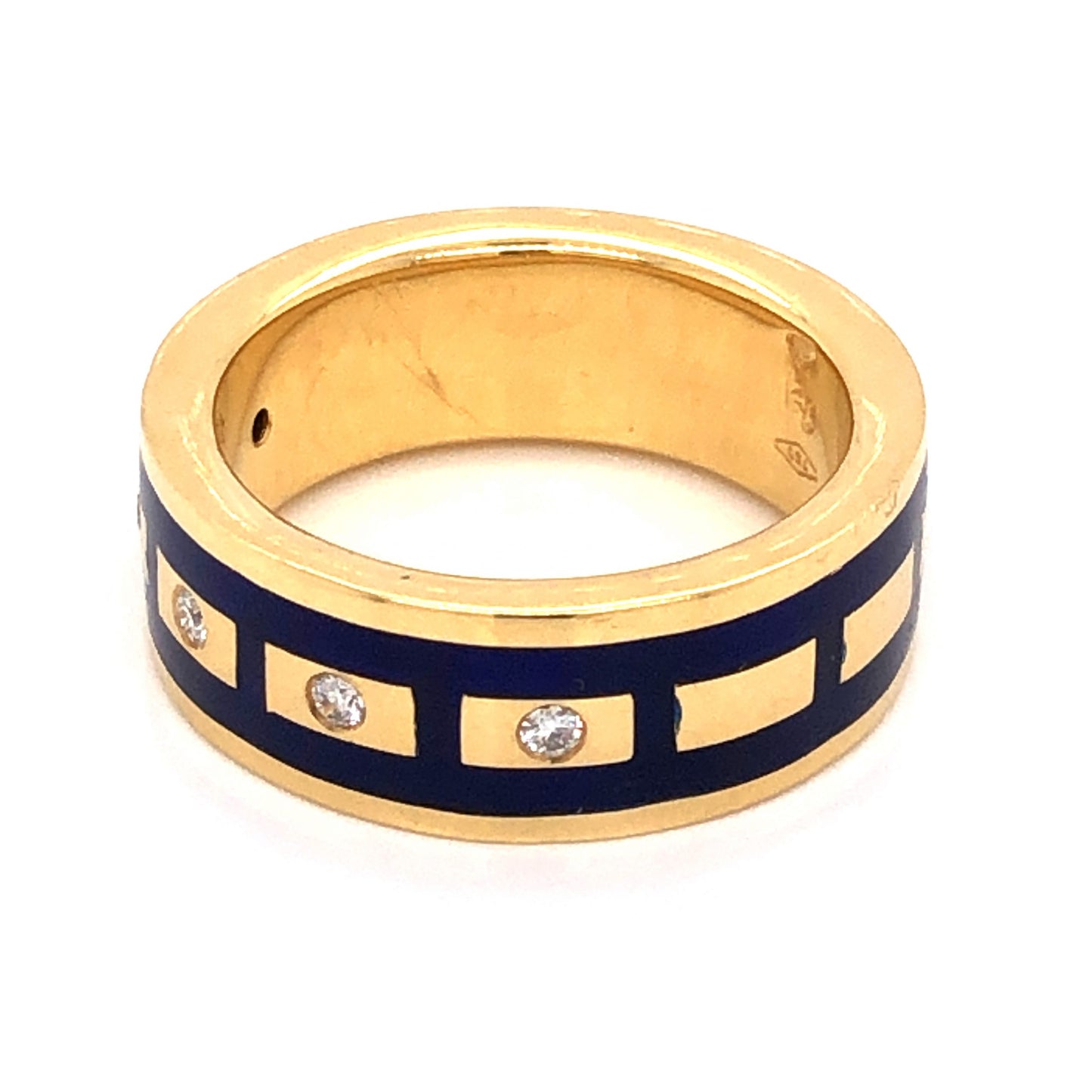 .10 Diamond Right Hand Ring in 18K Yellow Gold w/ Blue Enamel