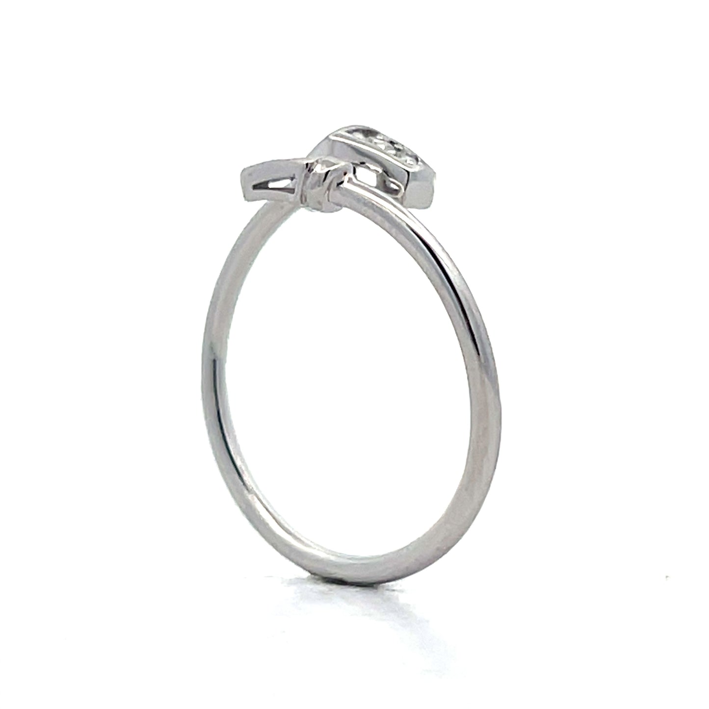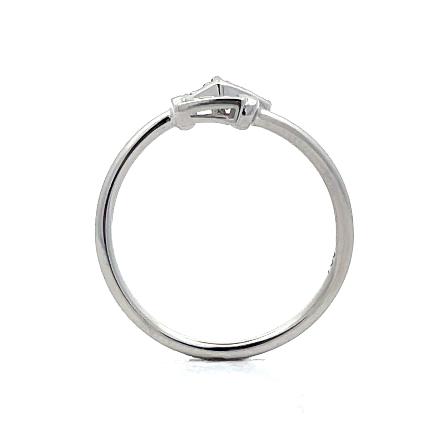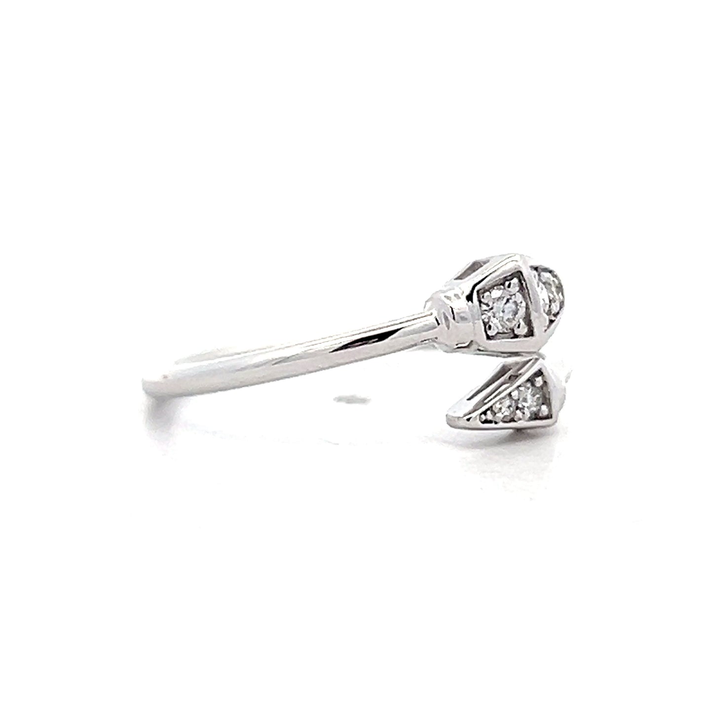 This 18 karat white gold stacking ring is a modern take on the snake ring Wrapping gracefully around the finger, it features .10 carats of round brilliant diamonds on the head and tail. Designed for versatility, this ring can work beautifully stacked or worn solo, bringing a refined edge that’s both modern and playful. The snake motif and white gold setting make it a unique piece that easily stands out.