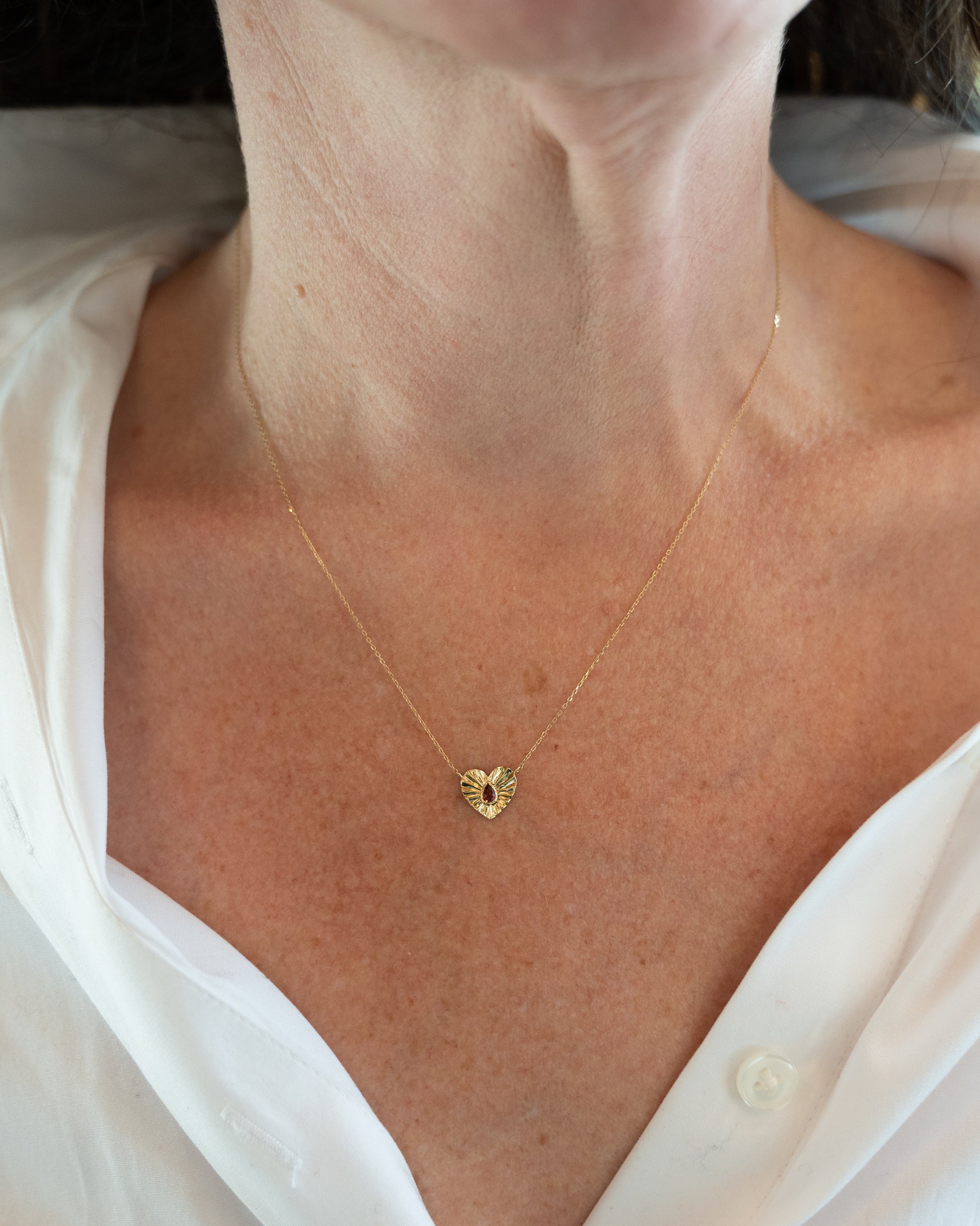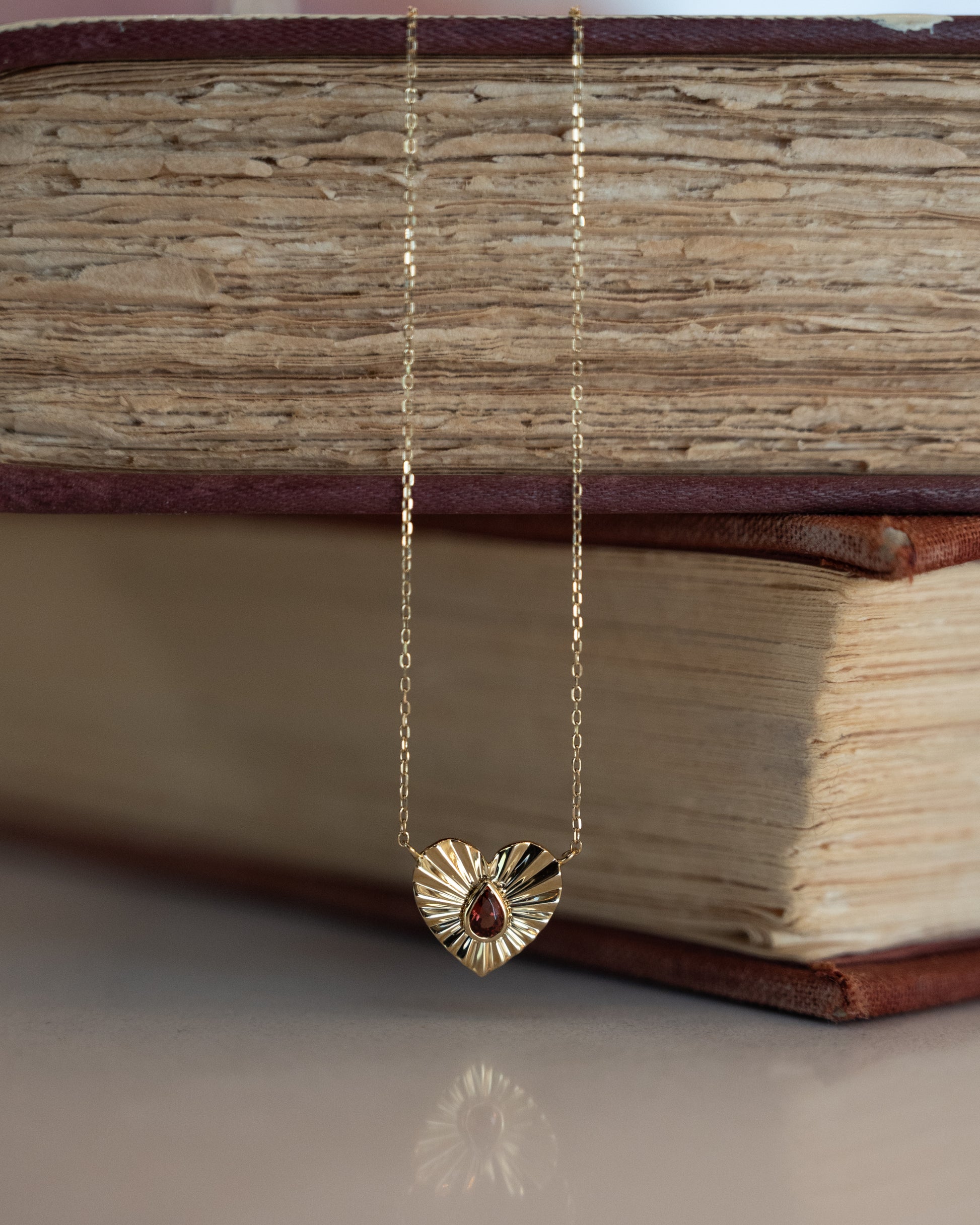 .10 Garnet Fluted Heart Pendant Necklace 14k