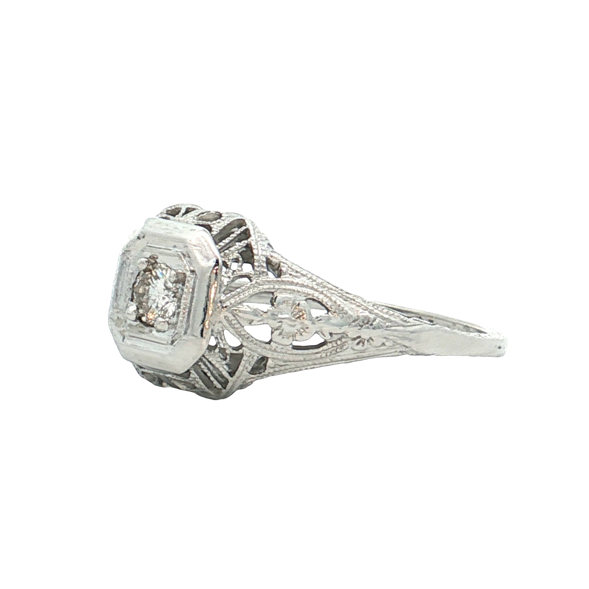 .12 Antique Art Deco Diamond Filigree Engagement Ring 18k