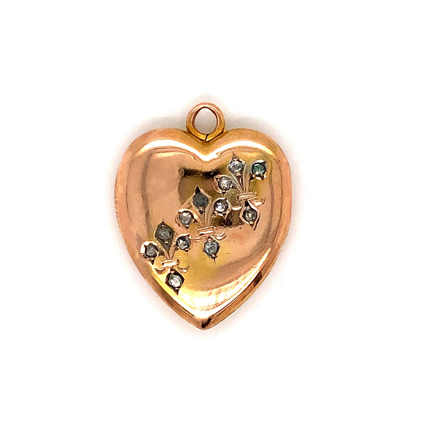 This romantic Victorian locket pendant features .12 carats of Old Mine cut diamonds and fleur-de-lis engravings in warm 10 karat yellow gold. Twelve (12) .01 carat diamonds decorate the French style engravings. This antique pendant opens at the hinge, with a classic locket space inside. To keep this vintage pendant locket close to your heart, pair with one of our yellow gold chain necklaces!