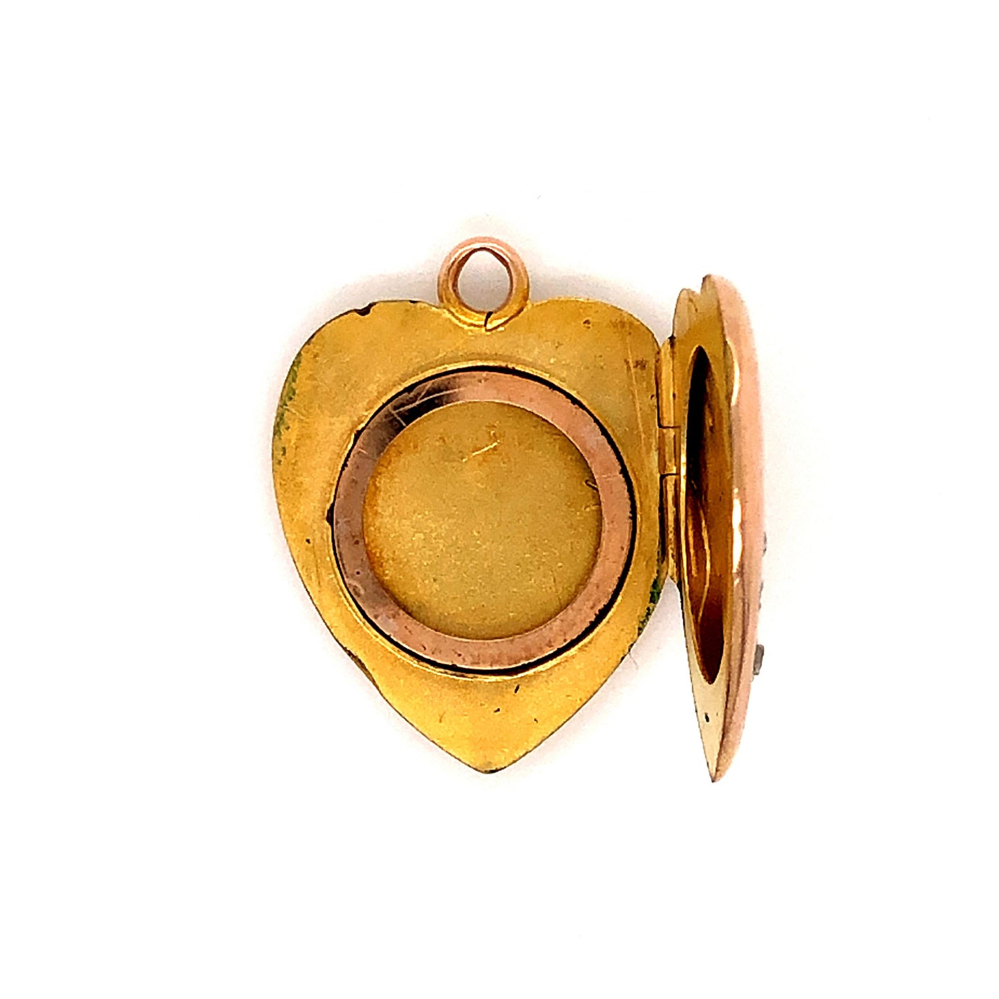 .12 Victorian Old Mine Cut Diamond Heart Locket in 10k Yellow Gold