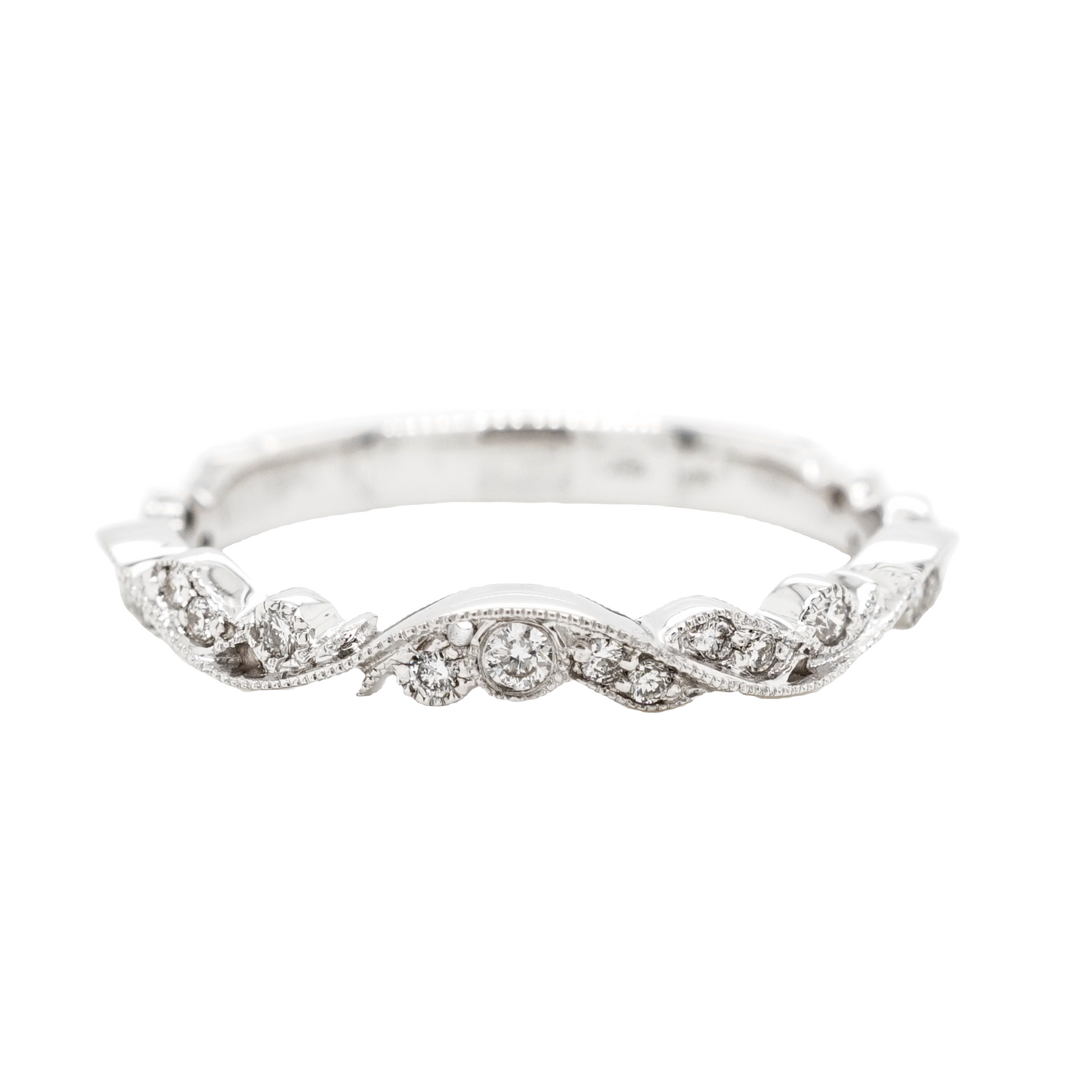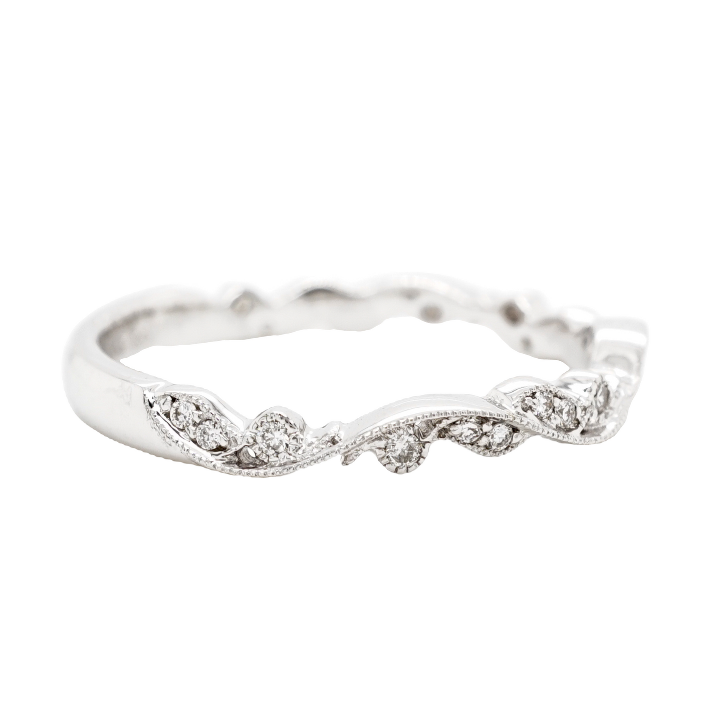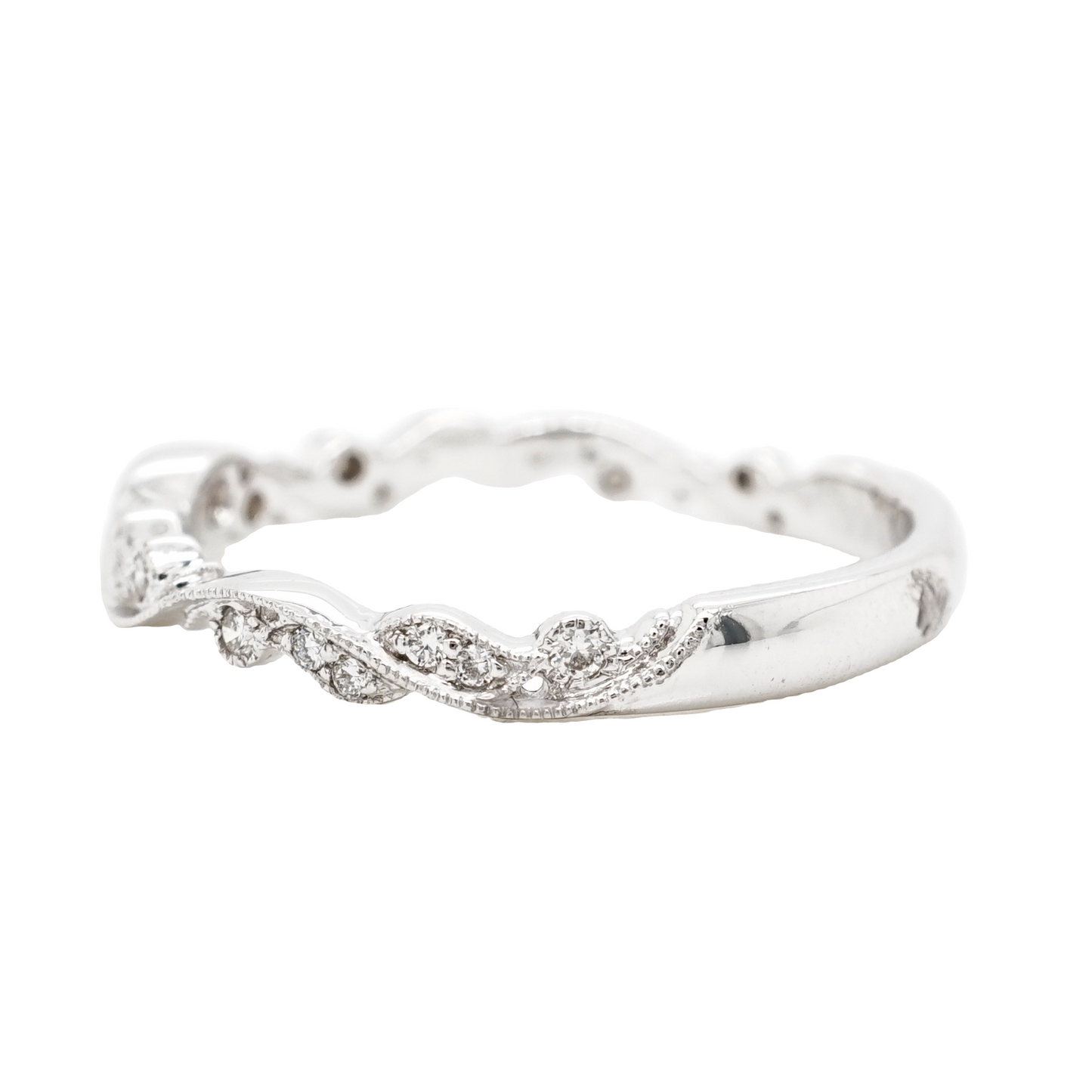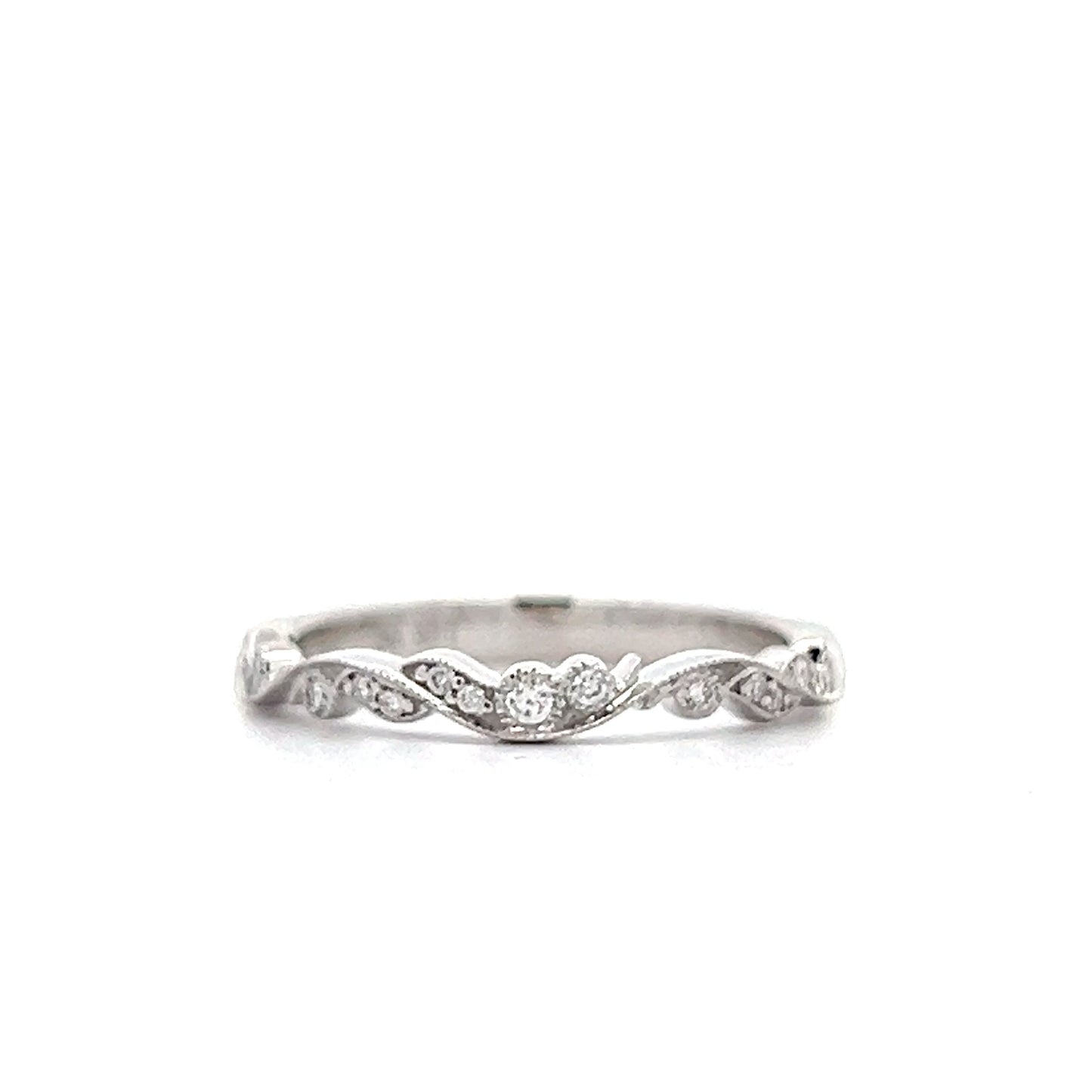 .22 Diamond Milgrain Twisted Wedding Band in 14k White Gold