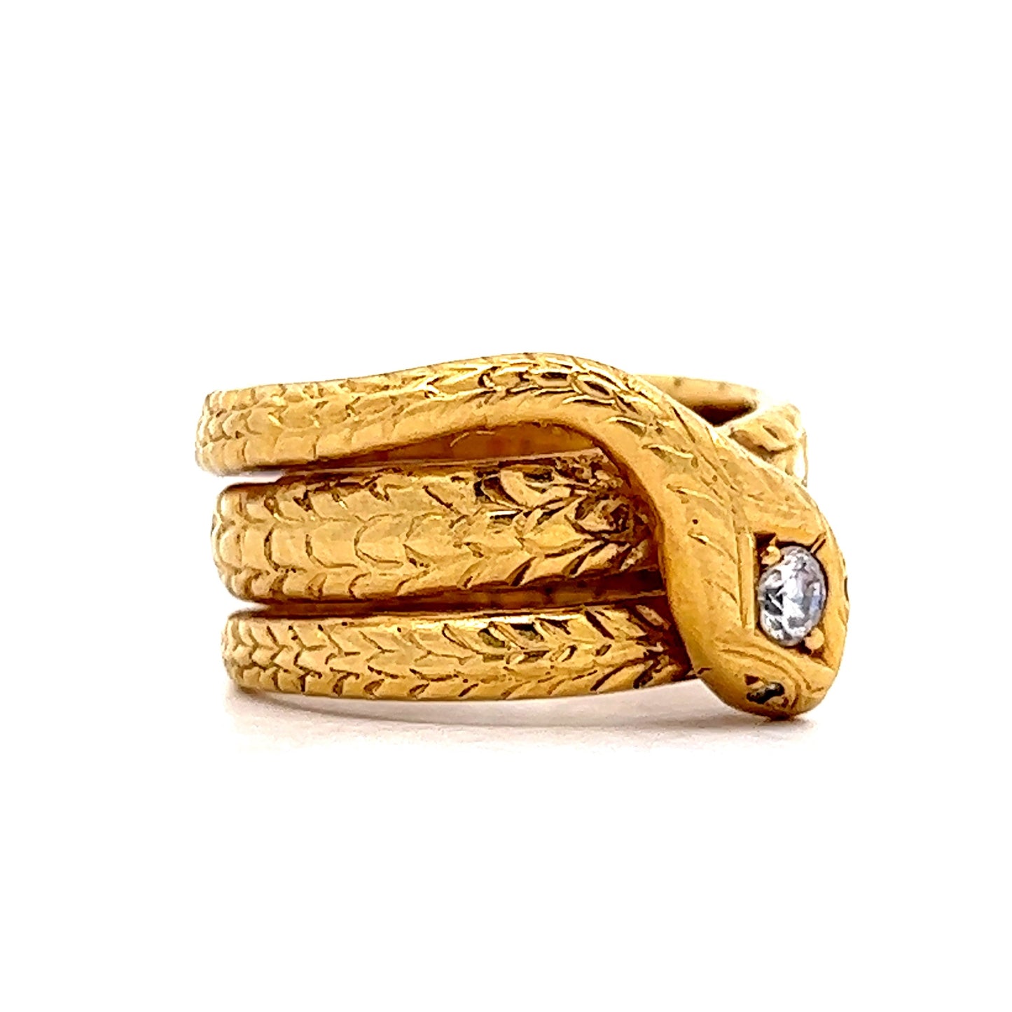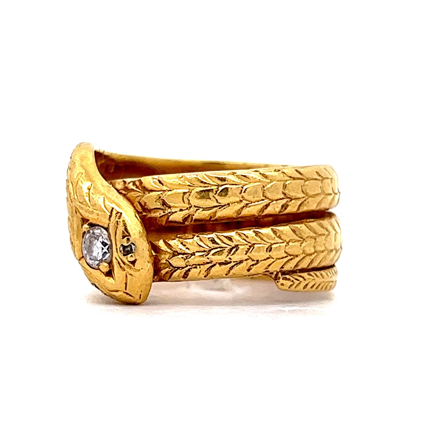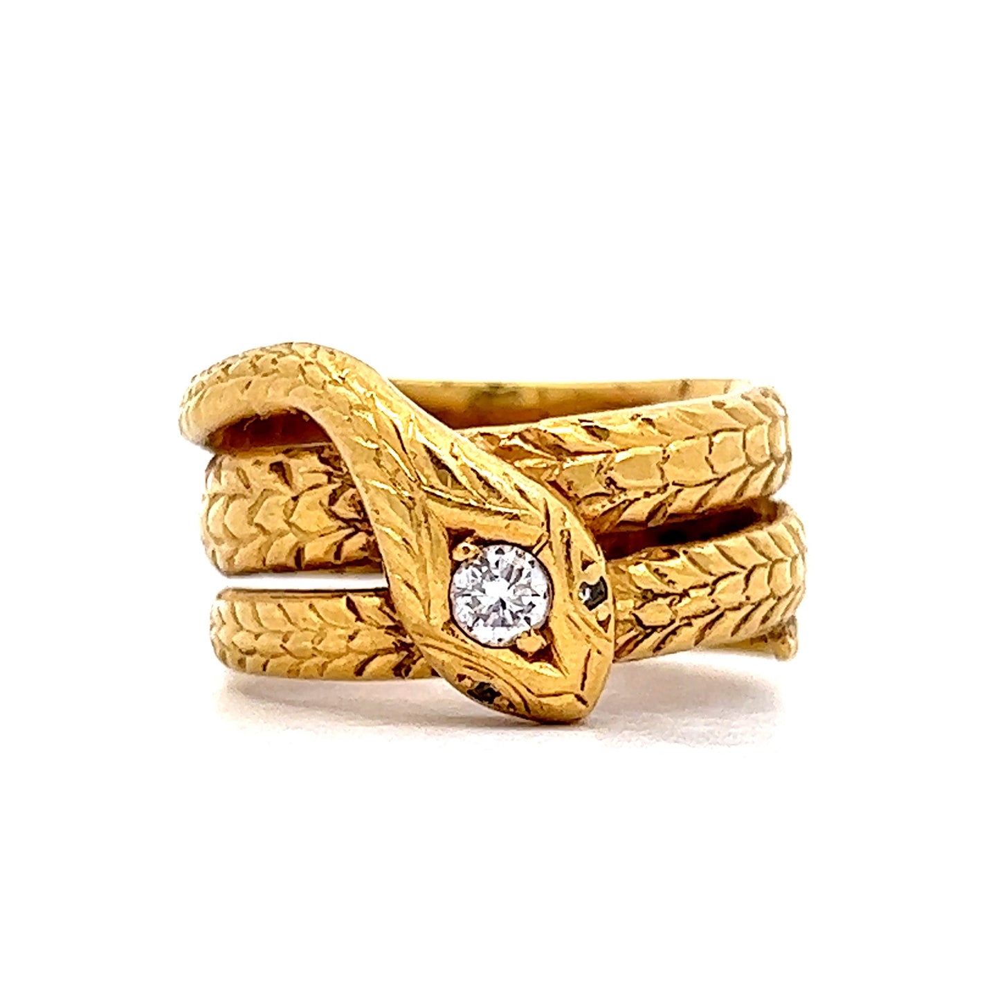 Vintage Diamond Snake Ring in 18k Yellow Gold