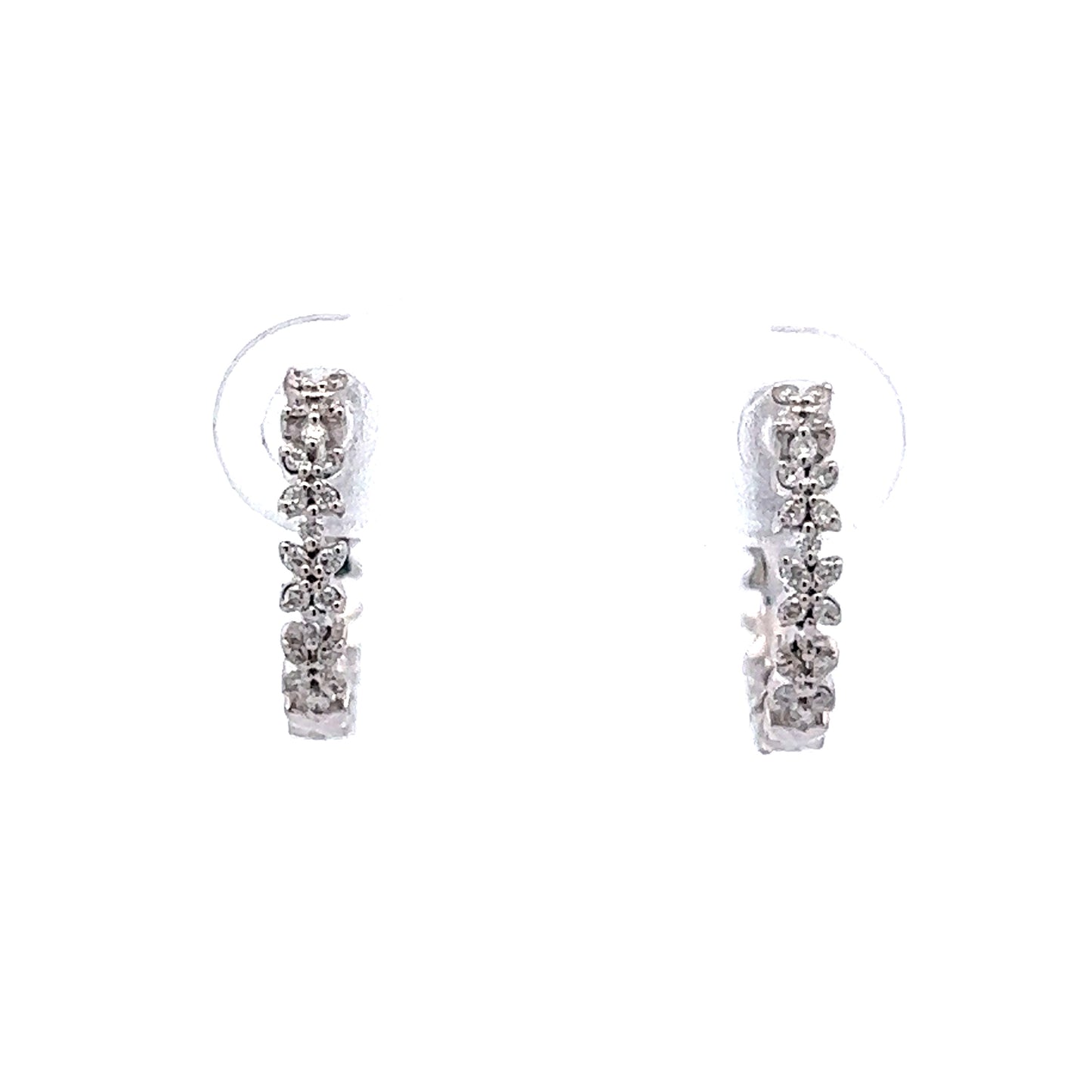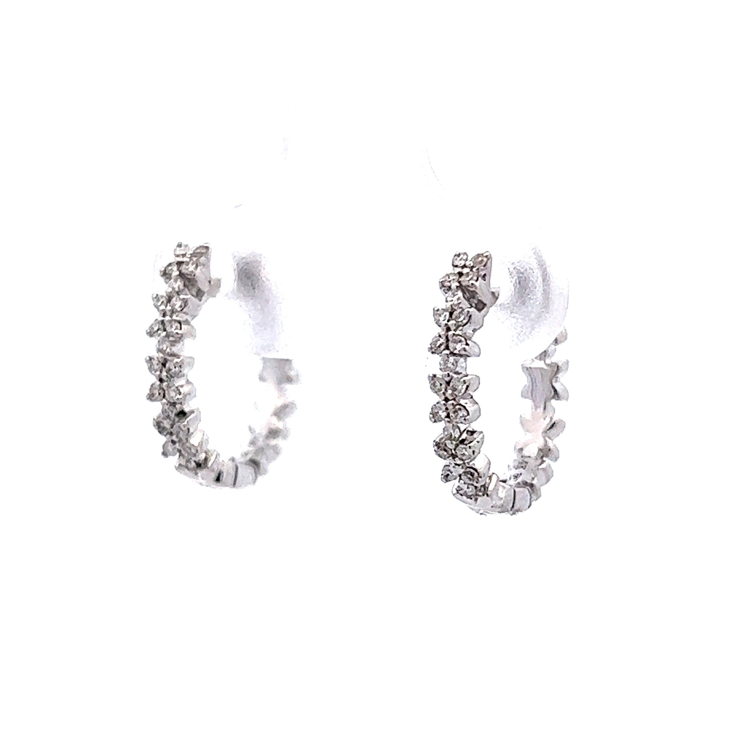Diamond Hoop Huggie Earrings in 14k White Gold