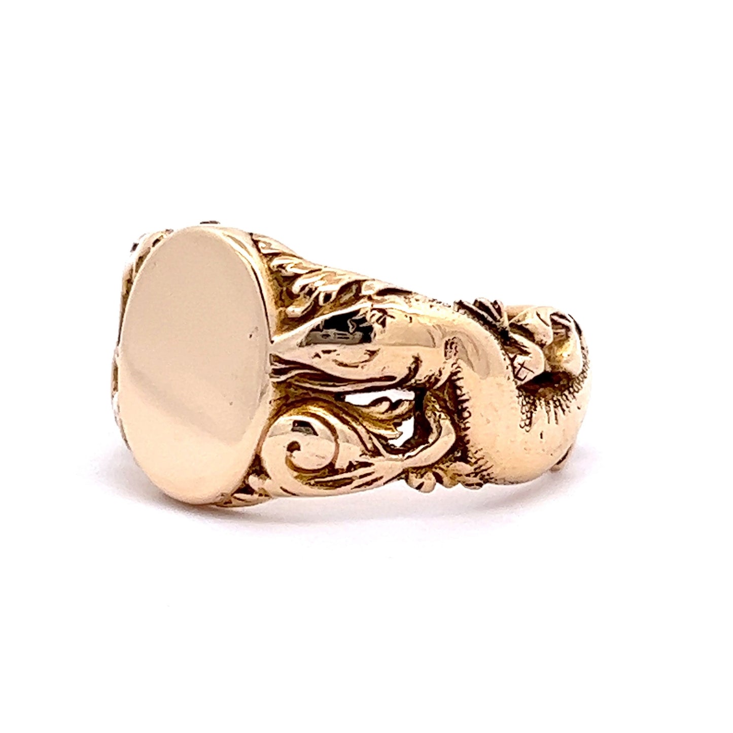 Antique Art Nouveau Serpent Signet Ring in 14k Yellow Gold