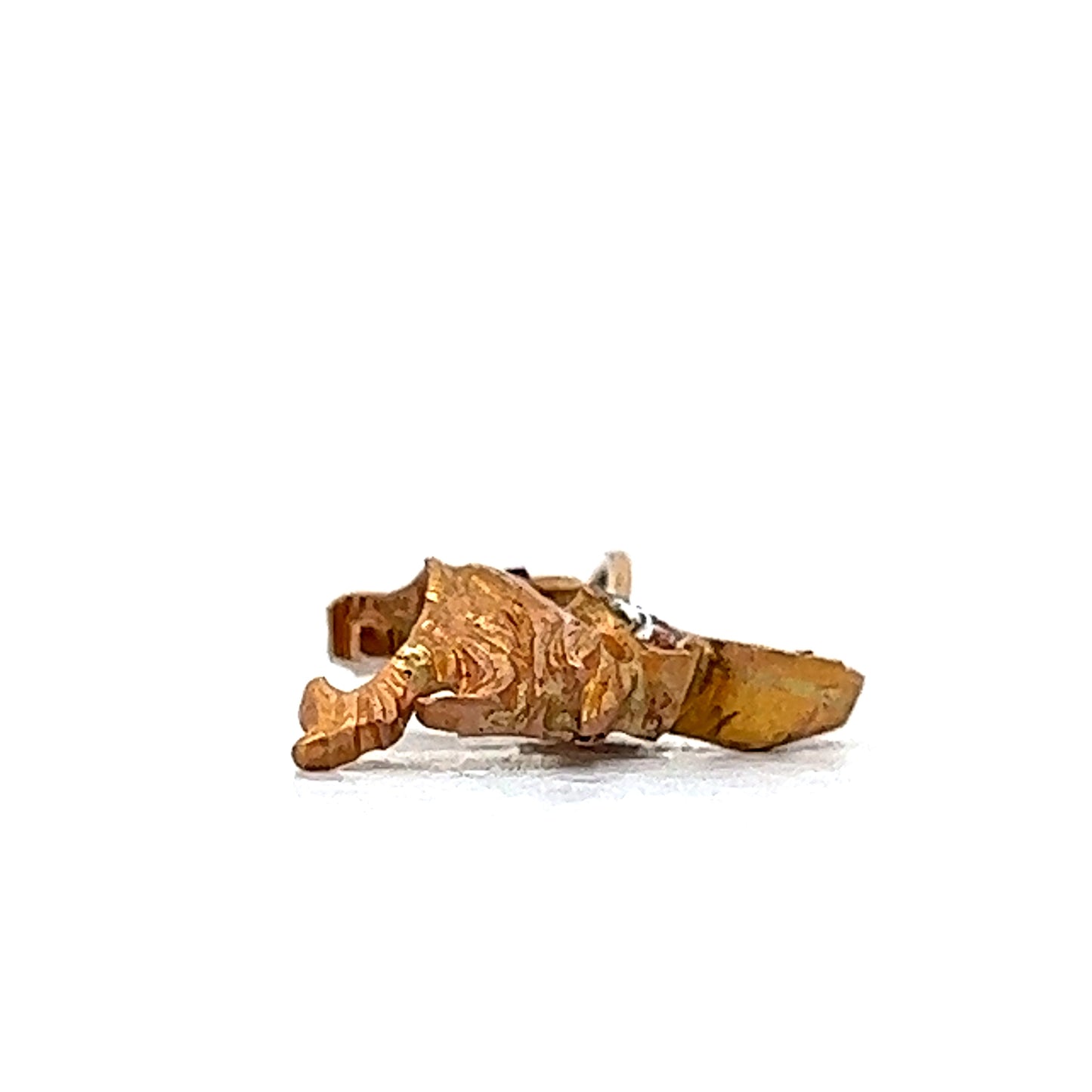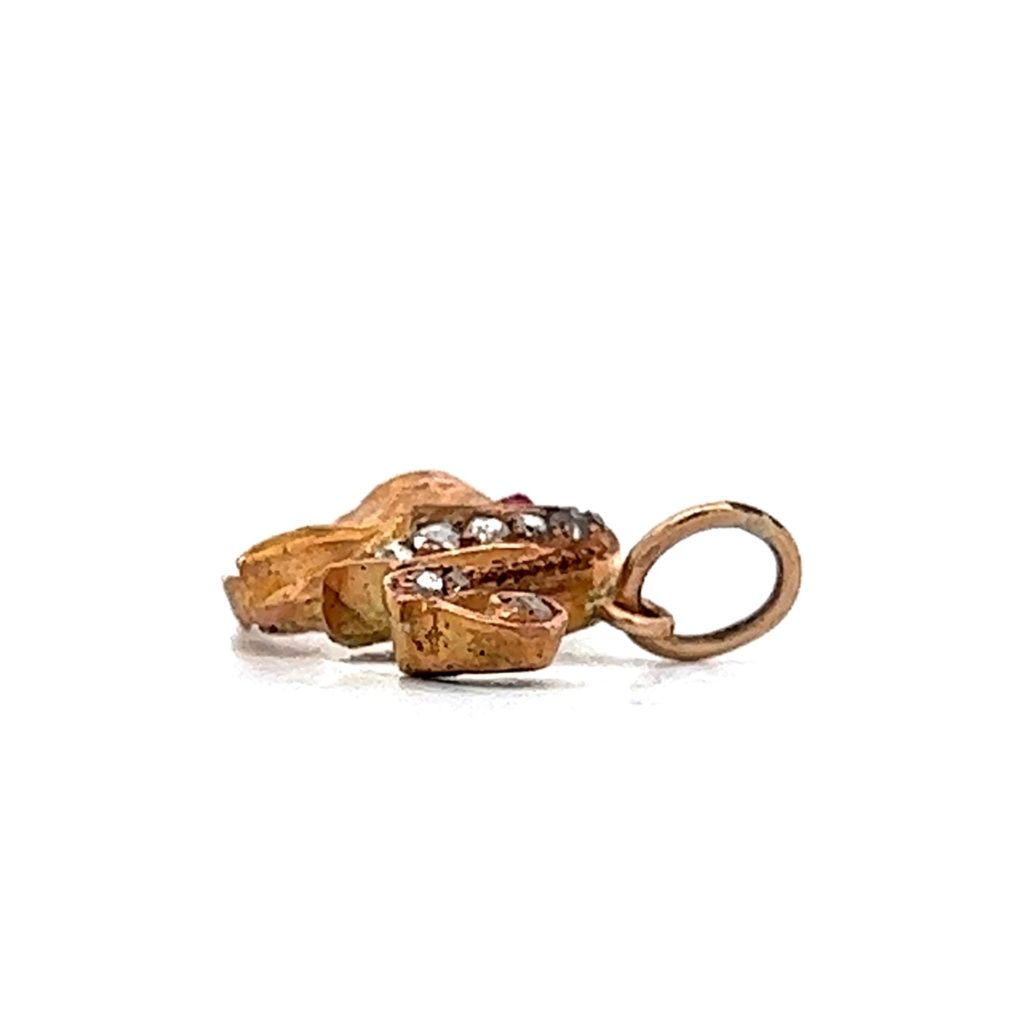 This 18 karat yellow gold charm is an exquisite vintage Victorian lions head piece. The old mine cut diamonds are the main feature, weighing in .15 carats. The ruby eye add a pop of contrast and the rose cut of the diamonds makes it a truly unique piece. An incredible piece of history to add to a charm bracelet or necklace, this piece is for anybody looking to up their style game with something very unique.