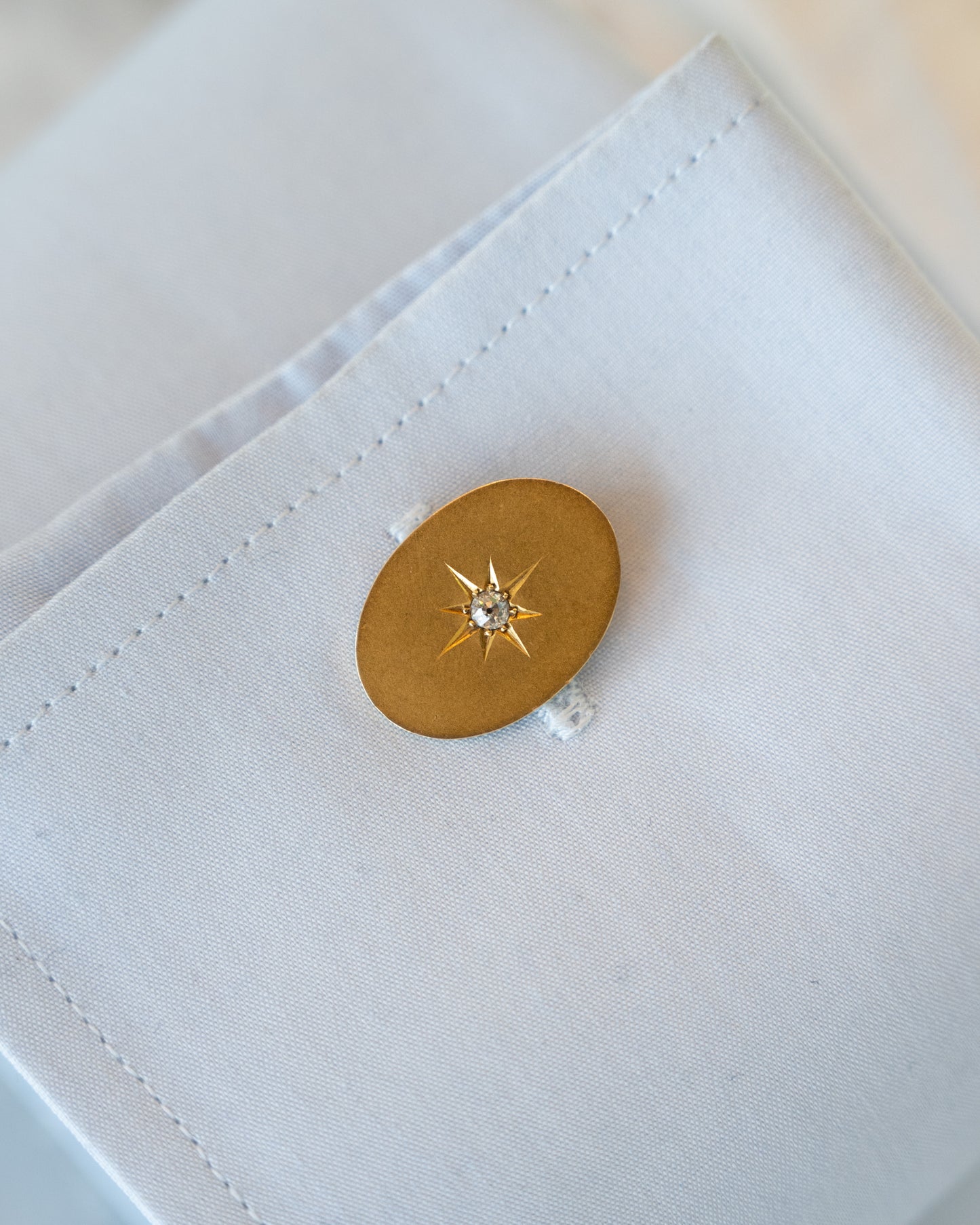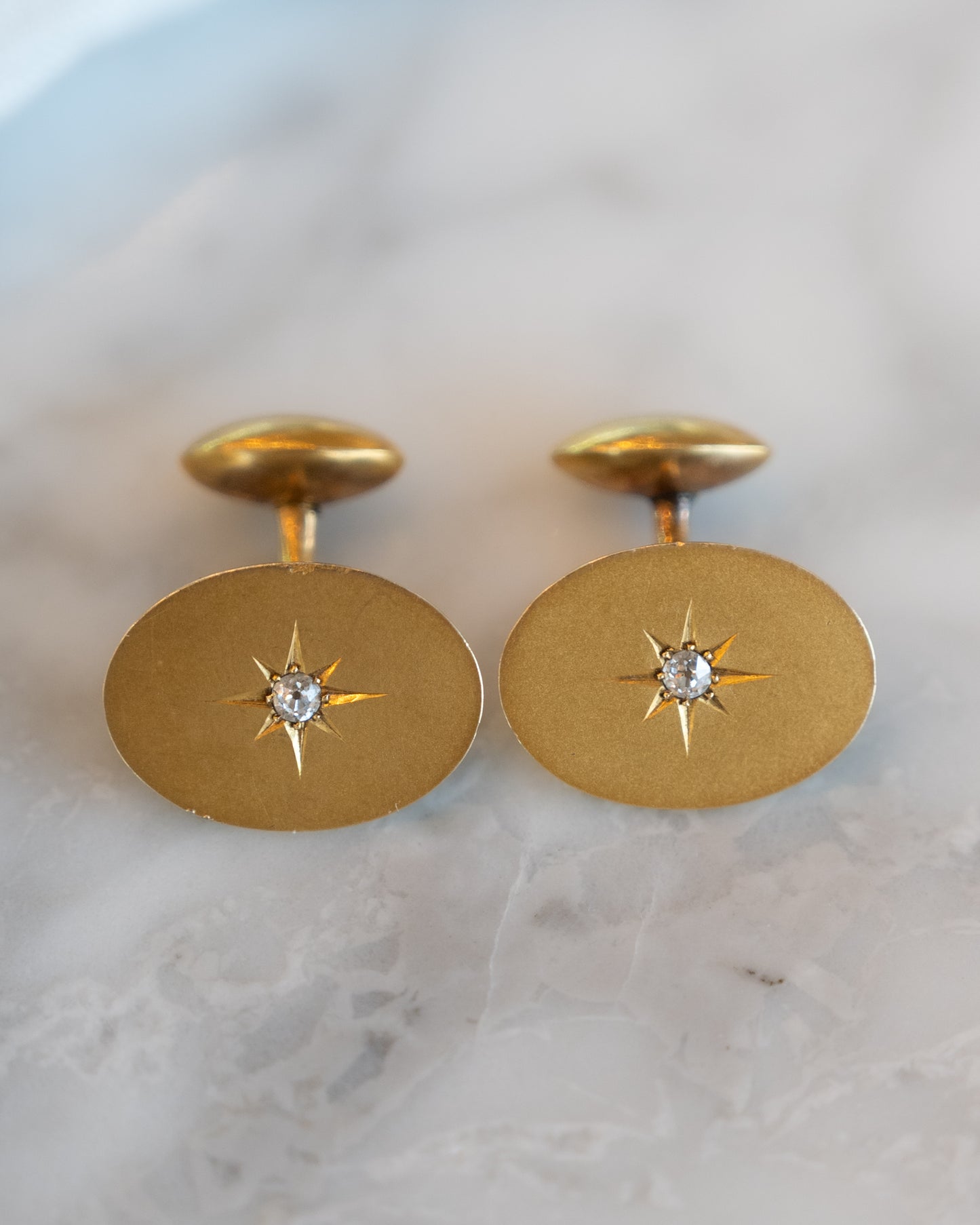 Dating from the Victorian period, these cufflinks bring a distinctive style that stands out from regular formal accessories. The combination of diamonds set in yellow gold adds a refined look to dress shirts and formal outfits. These cufflinks blend history with classic style for anyone who appreciates traditional men's accessories.
