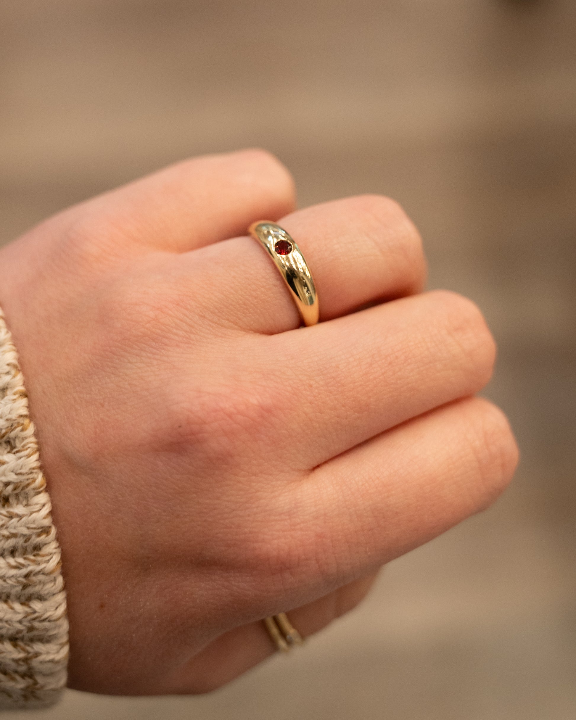 .16 Round Cut Garnet Stacking Ring in 14k Yellow Gold