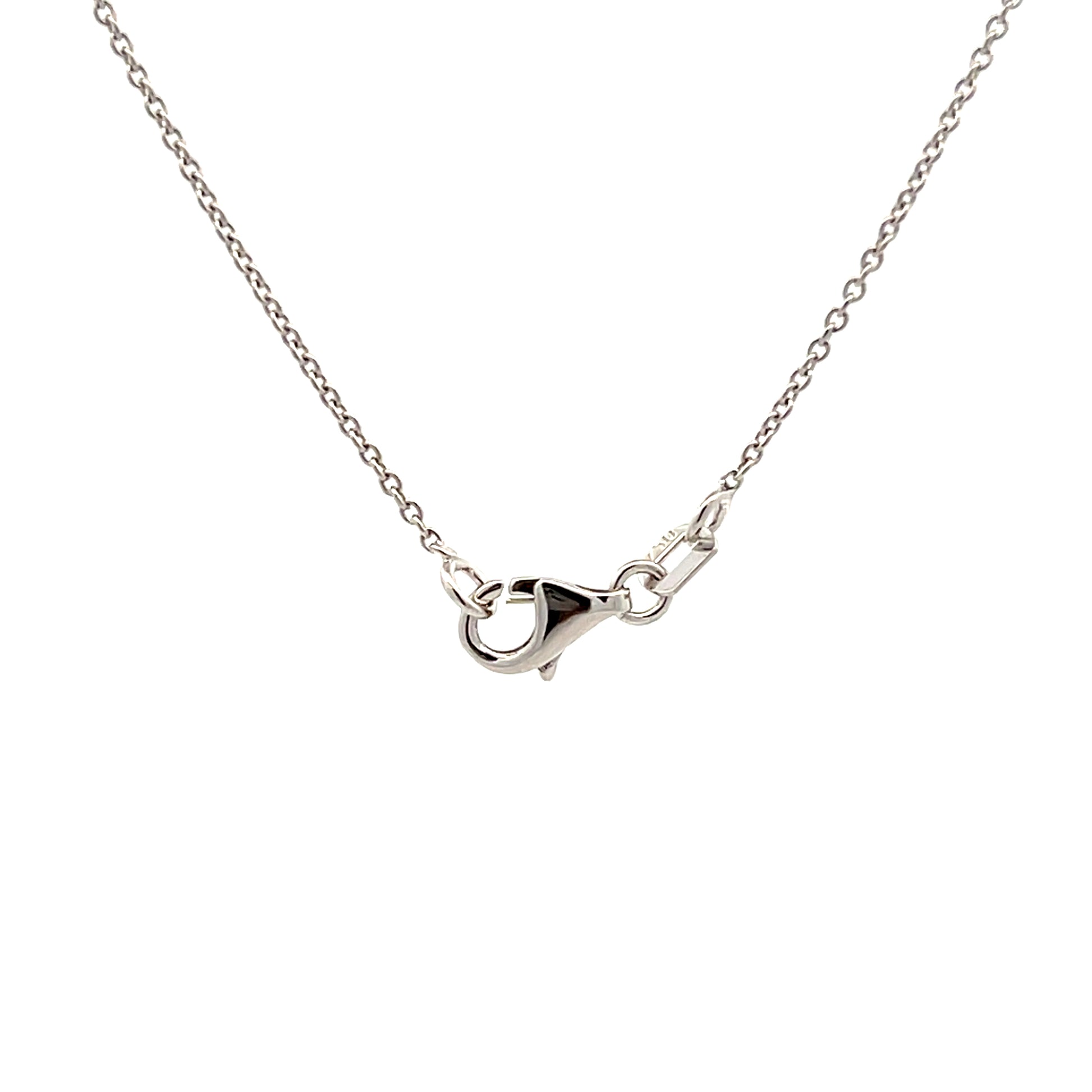 The pendant hangs from an adjustable 16-18 inch chain that can be worn at different lengths to suit various necklines. The total diamond weight of .18 carats distributed across all stones creates a bright, uniform sparkle that catches the eye without being overwhelming.